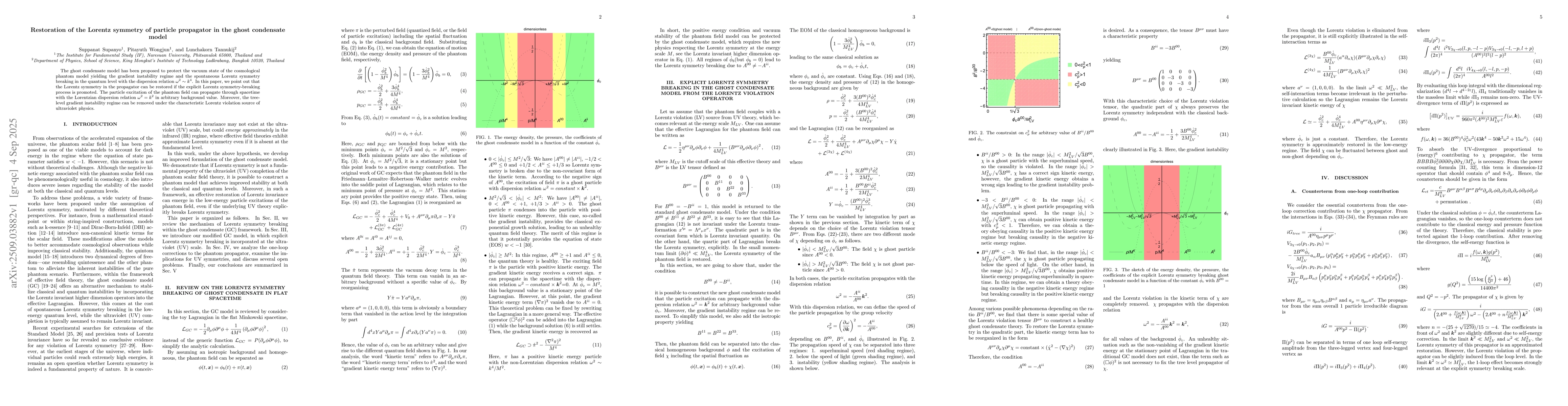 The ghost condensate model has been proposed to protect the vacuum state of the cosmological phantom model yielding the gradient instability regime and the spontaneous Lorentz symmetry breaking in the quantum level with the dispersion relation $\omega^2\sim k^4$. In this paper, we point out that the Lorentz symmetry in the propagator can be restored if the explicit Lorentz symmetry-breaking process is promoted. The particle excitation of the phantom field can propagate through spacetime with the Lorentzian dispersion relation $\omega^2=k^2$ in arbitrary background value. Moreover, the tree-level gradient instability regime can be removed under the characteristic Lorentz violation source of ultraviolet physics.