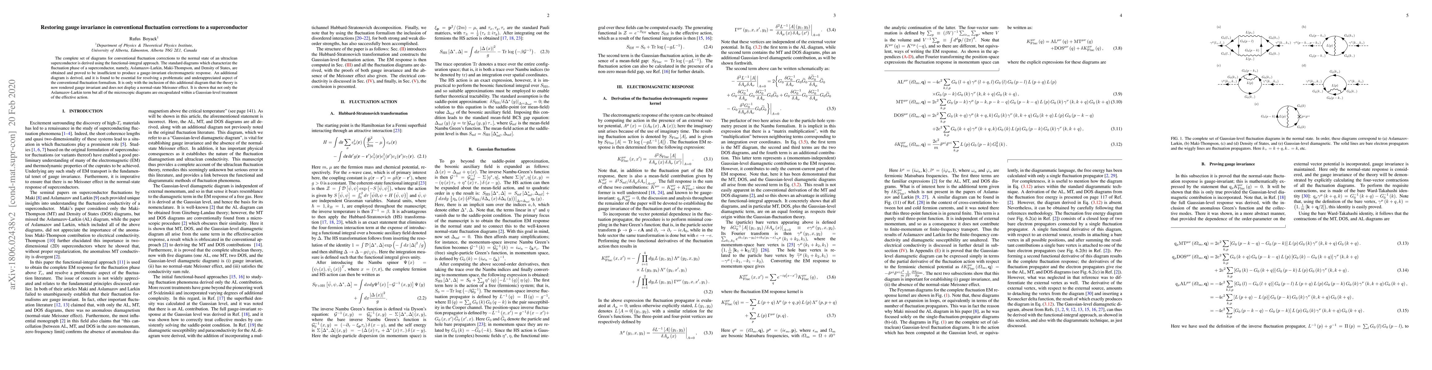 The complete set of diagrams for conventional fluctuation corrections to the normal state of an ultraclean superconductor is derived using the functional-integral approach. The standard diagrams which characterize the fluctuation phase of a superconductor, namely, Aslamazov-Larkin, Maki-Thompson, and Density of States, are obtained and proved to be insufficient to produce a gauge-invariant electromagnetic response. An additional diagram is derived, and it is found to be essential for resolving a problematic and underappreciated aspect of the conventional fluctuation formalism. It is only with the inclusion of this additional diagram that the theory is now rendered gauge invariant and does not display a normal-state Meissner effect. It is shown that not only the Aslamazov-Larkin term but all of the microscopic diagrams are encapsulated within a Gaussian-level treatment of the effective action.