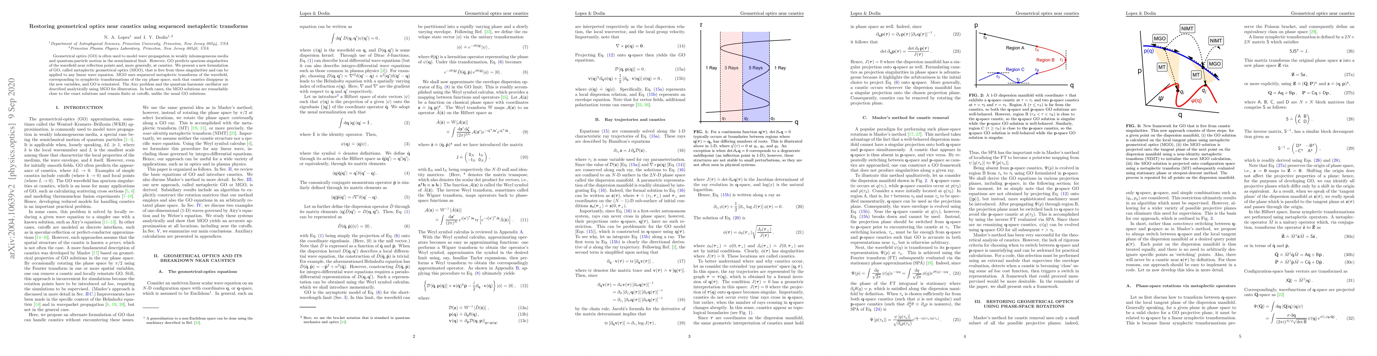 This paper introduces a new formulation of metaplectic geometrical optics (MGO) to resolve singularities near caustics in wave propagation models. MGO employs sequenced metaplectic transforms to eliminate singularities and accurately model wavefields, as demonstrated through the Airy problem and quantum harmonic oscillator.