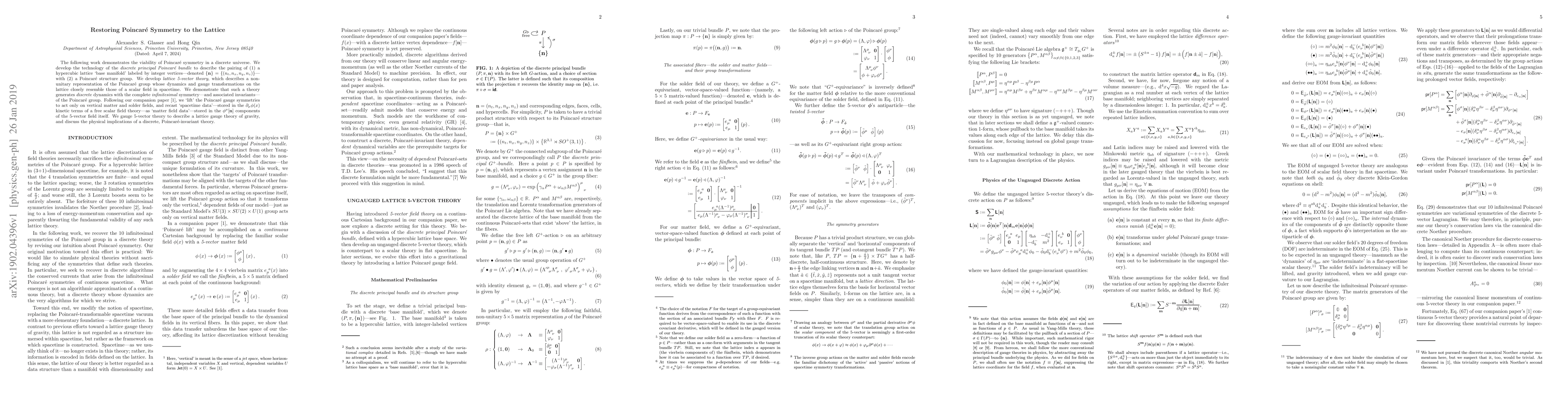 This paper develops a lattice 5-vector theory to restore Poincar\'e symmetry in a discrete universe, creating a lattice principal Poincar\'e bundle that pairs a hypercubic lattice with a Poincar\'e structure group, and demonstrates its ability to generate discrete dynamics with full Poincar\'e symmetry.