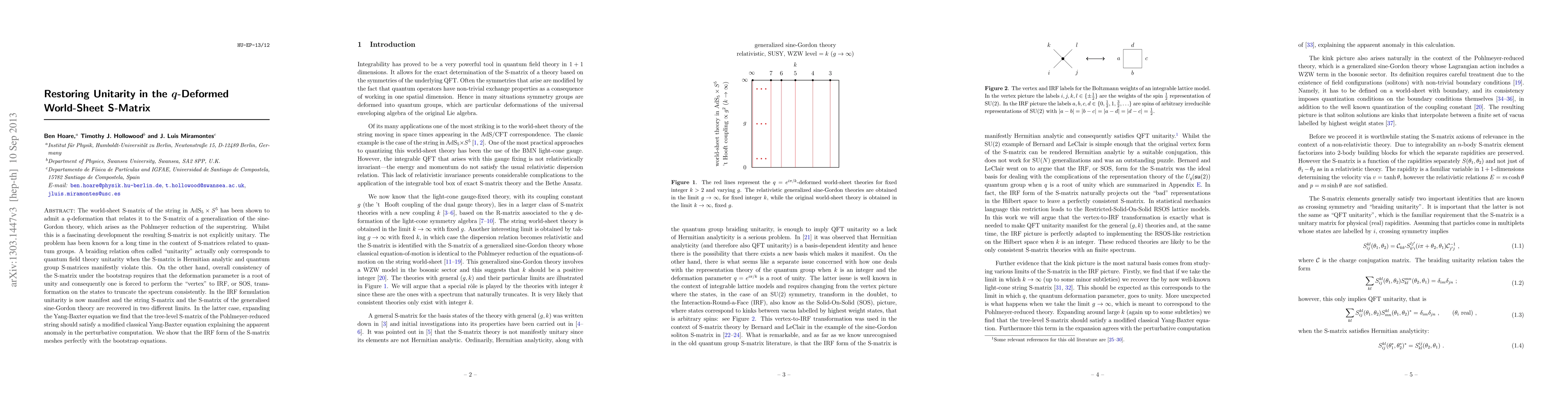 The world-sheet S-matrix of the string in AdS5 x S5 has been shown to admit a q-deformation that relates it to the S-matrix of a generalization of the sine-Gordon theory, which arises as the Pohlmeyer reduction of the superstring. Whilst this is a fascinating development the resulting S-matrix is not explicitly unitary. The problem has been known for a long time in the context of S-matrices related to quantum groups. A braiding relation often called "unitarity" actually only corresponds to quantum field theory unitarity when the S-matrix is Hermitian analytic and quantum group S-matrices manifestly violate this. On the other hand, overall consistency of the S-matrix under the bootstrap requires that the deformation parameter is a root of unity and consequently one is forced to perform the "vertex" to IRF, or SOS, transformation on the states to truncate the spectrum consistently. In the IRF formulation unitarity is now manifest and the string S-matrix and the S-matrix of the generalised sine-Gordon theory are recovered in two different limits. In the latter case, expanding the Yang-Baxter equation we find that the tree-level S-matrix of the Pohlmeyer-reduced string should satisfy a modified classical Yang-Baxter equation explaining the apparent anomaly in the perturbative computation. We show that the IRF form of the S-matrix meshes perfectly with the bootstrap equations.