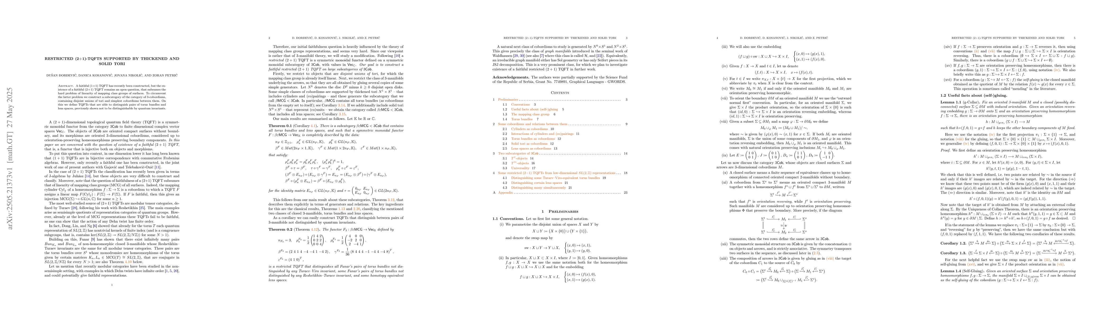 Researchers constructed a subcategory of TQFTs that can distinguish between specific torus bundles and lens spaces, addressing an open question in the field of topological quantum field theory.