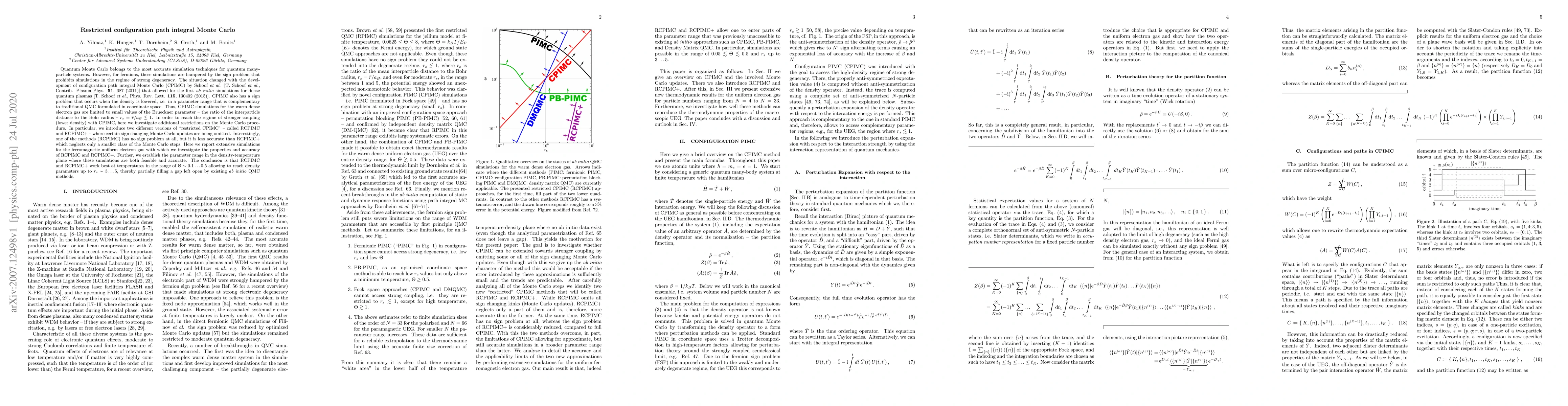 Researchers developed two new methods for simulating fermionic quantum systems without the sign problem, allowing them to study a previously inaccessible range of temperatures and densities. These 'Restricted configuration path integral Monte Carlo' (RCPIMC) and 'Restricted CPIMC+' methods provide accurate simulations at high density parameters up to $r_s imes 5$.