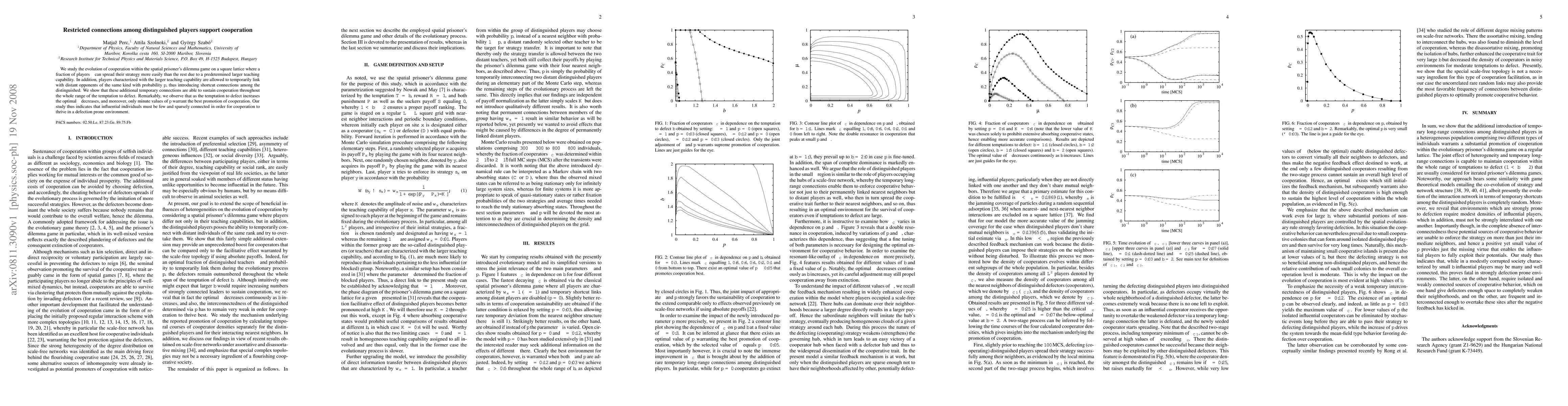 We study the evolution of cooperation within the spatial prisoner's dilemma game on a square lattice where a fraction of players $\mu$ can spread their strategy more easily than the rest due to a predetermined larger teaching capability. In addition, players characterized with the larger teaching capability are allowed to temporarily link with distant opponents of the same kind with probability $p$, thus introducing shortcut connections among the distinguished. We show that these additional temporary connections are able to sustain cooperation throughout the whole range of the temptation to defect. Remarkably, we observe that as the temptation to defect increases the optimal $\mu$ decreases, and moreover, only minute values of $p$ warrant the best promotion of cooperation. Our study thus indicates that influential individuals must be few and sparsely connected in order for cooperation to thrive in a defection prone environment.