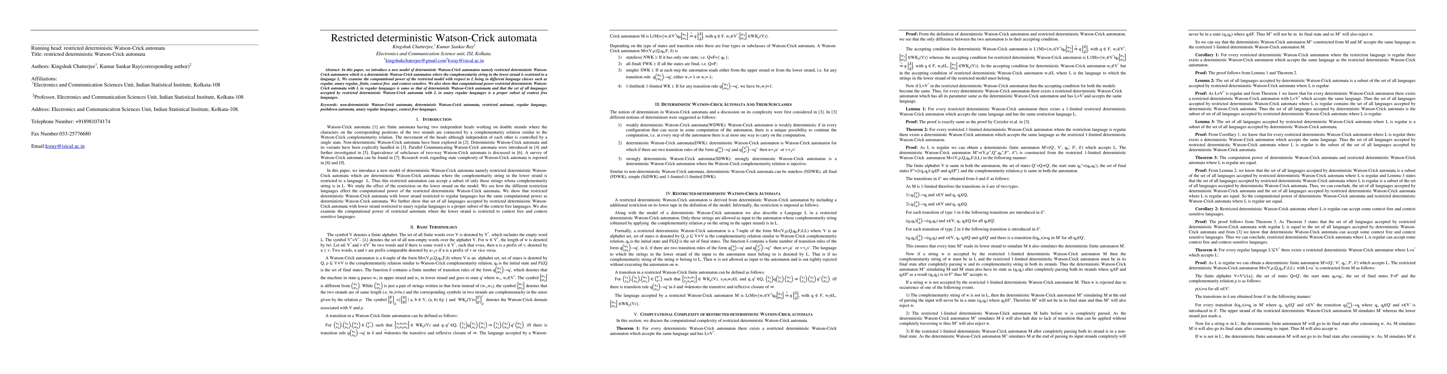 In this paper, we introduce a new model of deterministic Watson-Crick automaton namely restricted deterministic Watson- Crick automaton which is a deterministic Watson-Crick automaton where the complementarity string in the lower strand is restricted to a language L. We examine the computational power of the restricted model with respect to L being in different language classes such as regular, unary regular, finite, context free and context sensitive. We also show that computational power of restricted deterministic Watson- Crick automata with L in regular languages is same as that of deterministic Watson-Crick automata and that the set of all languages accepted by restricted deterministic Watson-Crick automata with L in unary regular languages is a proper subset of context free languages.