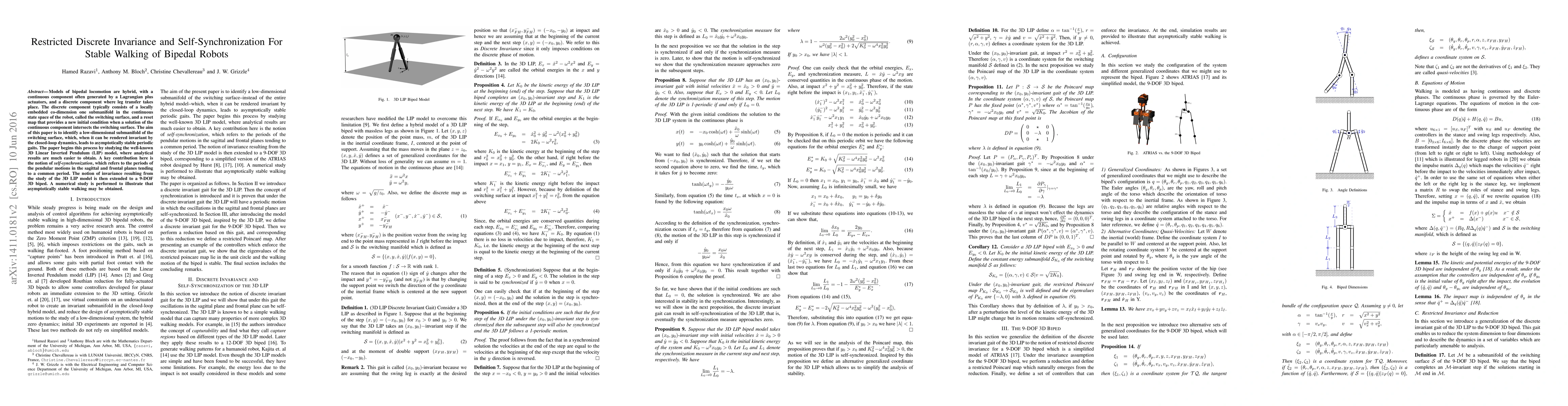 Researchers identify a key concept called self-synchronization that enables asymptotically stable walking in bipedal robots, and apply this to both a simplified 3D model and a more complex 9-DOF system.