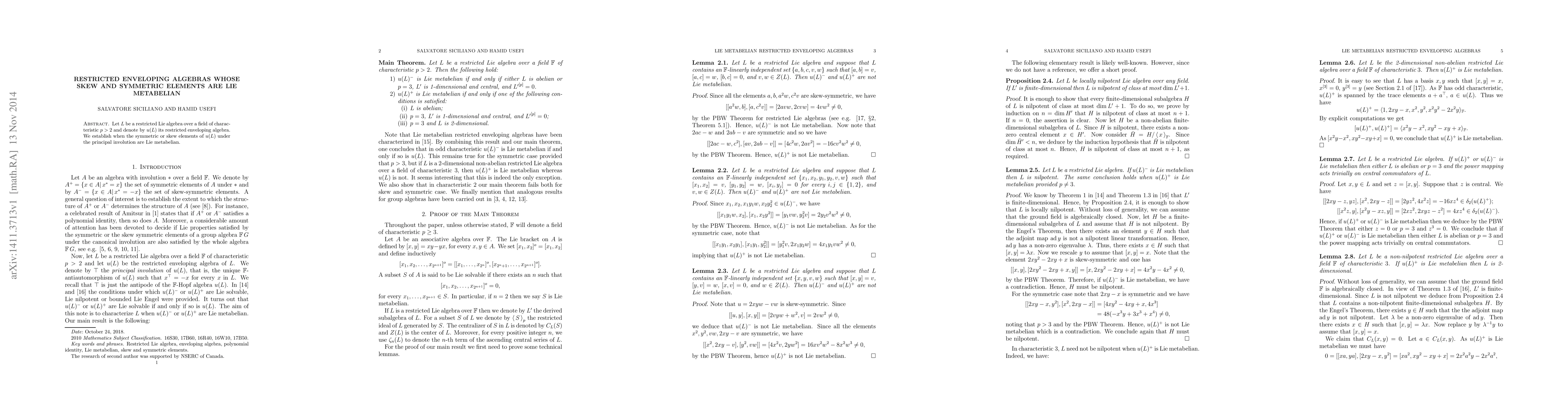 Let $L$ be a restricted Lie algebra over a field of characteristic $p>2$ and denote by $u(L)$ its restricted enveloping algebra. We establish when the symmetric or skew elements of $u(L)$ under the principal involution are Lie metabelian.