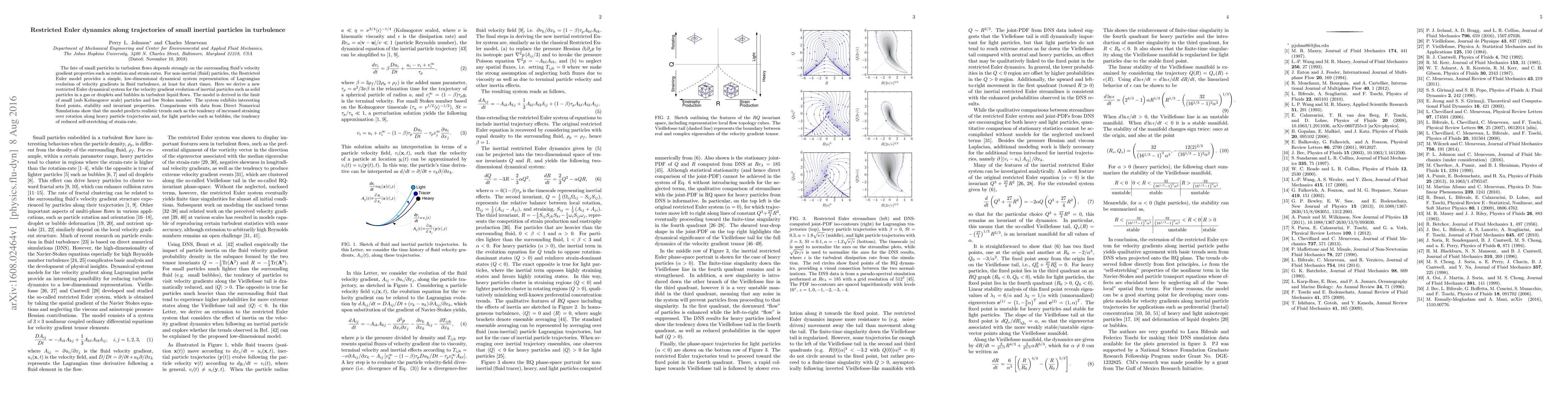 This paper develops a new restricted Euler dynamical system to model the velocity gradient evolution of small inertial particles in turbulent flows, showing realistic trends in straining and rotation compared to Direct Numerical Simulations. The model is derived for particles at the sub Kolmogorov scale and low Stokes number, highlighting fixed points and stability properties.