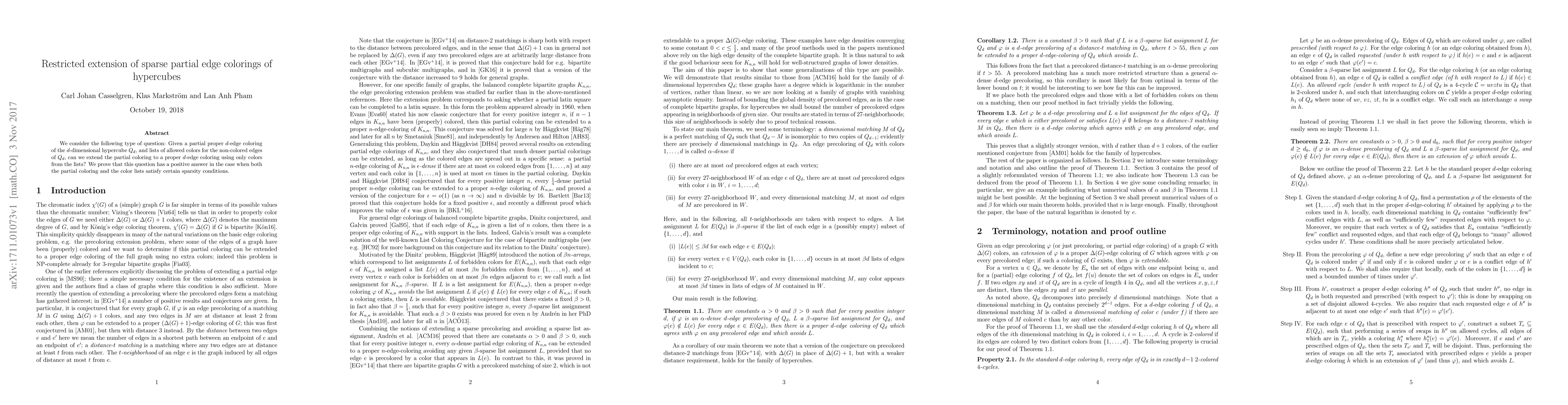The paper presents a novel approach to extending partial edge colorings in hypercubes by imposing sparsity conditions on both the partial coloring and the color lists, ensuring a proper complete edge coloring.