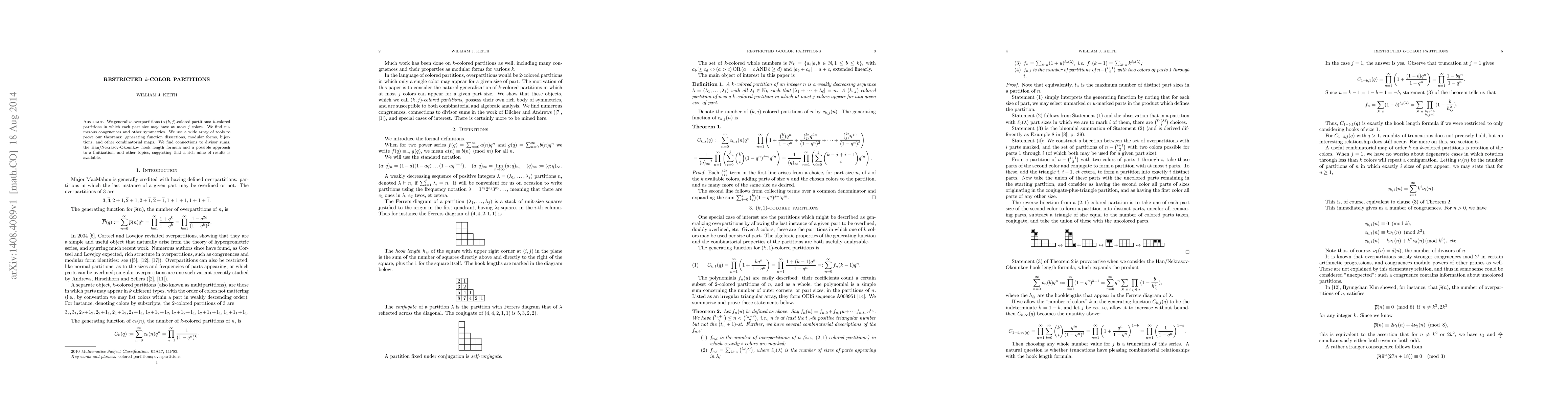We generalize overpartitions to (k,j)-colored partitions: k-colored partitions in which each part size may have at most j colors. We find numerous congruences and other symmetries. We use a wide array of tools to prove our theorems: generating function dissections, modular forms, bijections, and other combinatorial maps. We find connections to divisor sums, the Han/Nekrasov-Okounkov hook length formula and a possible approach to a finitization, and other topics, suggesting that a rich mine of results is available.