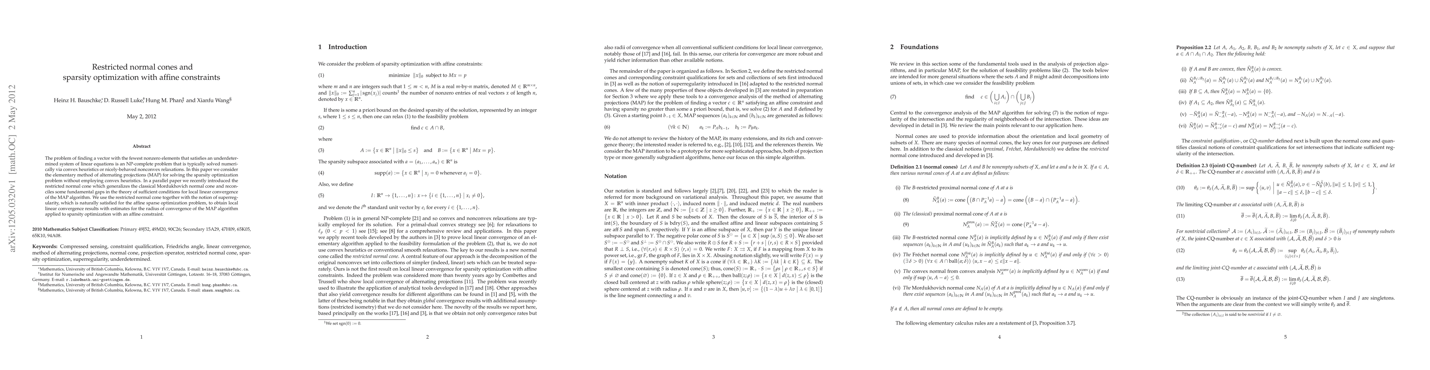 This paper explores the use of alternating projections (MAP) to solve sparsity optimization problems without convex heuristics, leveraging the recently introduced restricted normal cone to achieve local linear convergence and provide convergence radius estimates for affine sparse optimization.