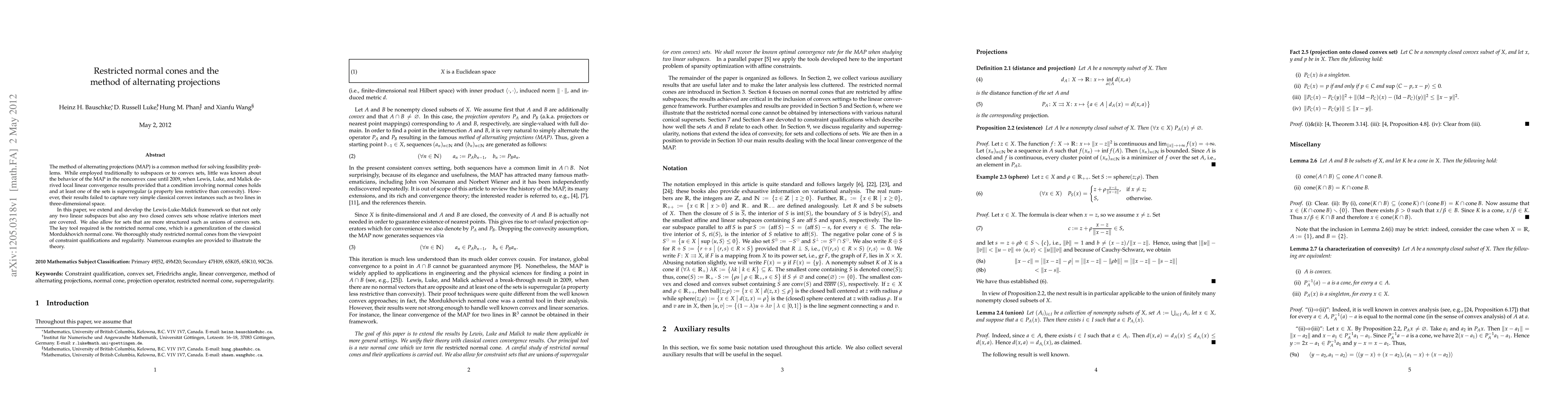 The method of alternating projections (MAP) is a common method for solving feasibility problems. While employed traditionally to subspaces or to convex sets, little was known about the behavior of the MAP in the nonconvex case until 2009, when Lewis, Luke, and Malick derived local linear convergence results provided that a condition involving normal cones holds and at least one of the sets is superregular (a property less restrictive than convexity). However, their results failed to capture very simple classical convex instances such as two lines in three-dimensional space. In this paper, we extend and develop the Lewis-Luke-Malick framework so that not only any two linear subspaces but also any two closed convex sets whose relative interiors meet are covered. We also allow for sets that are more structured such as unions of convex sets. The key tool required is the restricted normal cone, which is a generalization of the classical Mordukhovich normal cone. We thoroughly study restricted normal cones from the viewpoint of constraint qualifications and regularity. Numerous examples are provided to illustrate the theory.