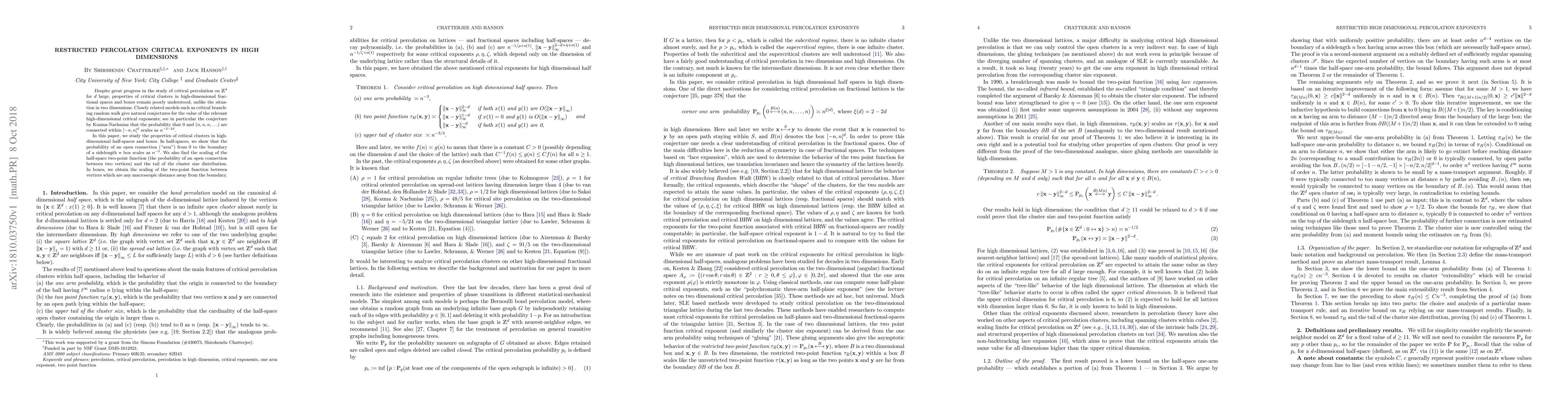 This paper investigates critical percolation clusters in high-dimensional spaces, demonstrating that the probability of an open connection from the origin to the boundary of a sidelength $n$ box scales as $n^{-3}$. It also determines the scaling of the two-point function and the tail of the cluster size distribution in both half-spaces and boxes.