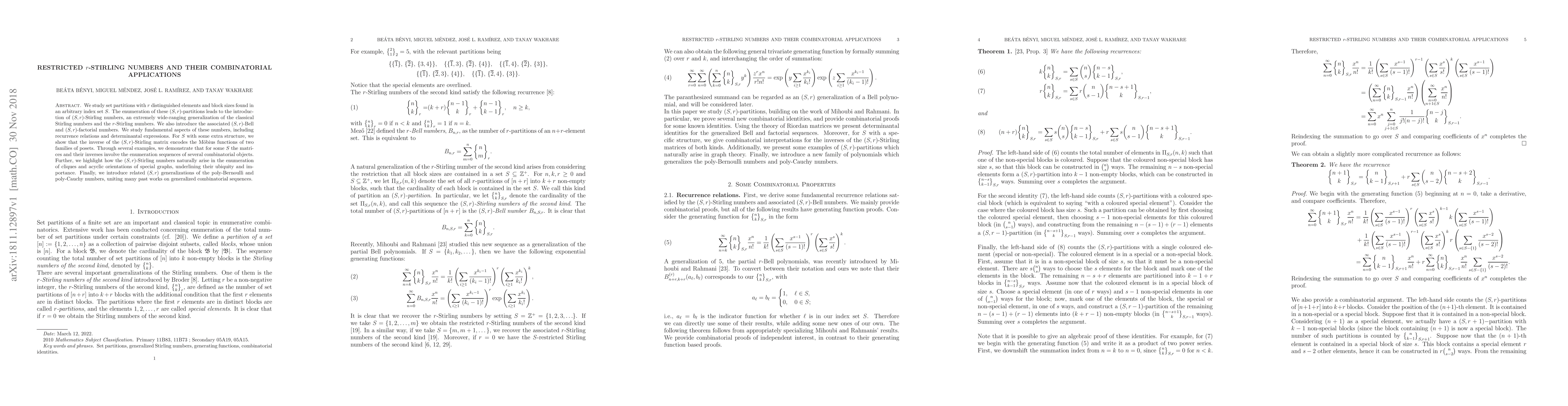 This paper introduces $(S,r)$-Stirling numbers, a generalization of classical Stirling numbers, and explores their combinatorial applications, including recurrence relations and determinantal expressions. It demonstrates the significance of these numbers in the enumeration of cliques and acyclic orientations in special graphs, and connects them to various combinatorial objects and sequences.