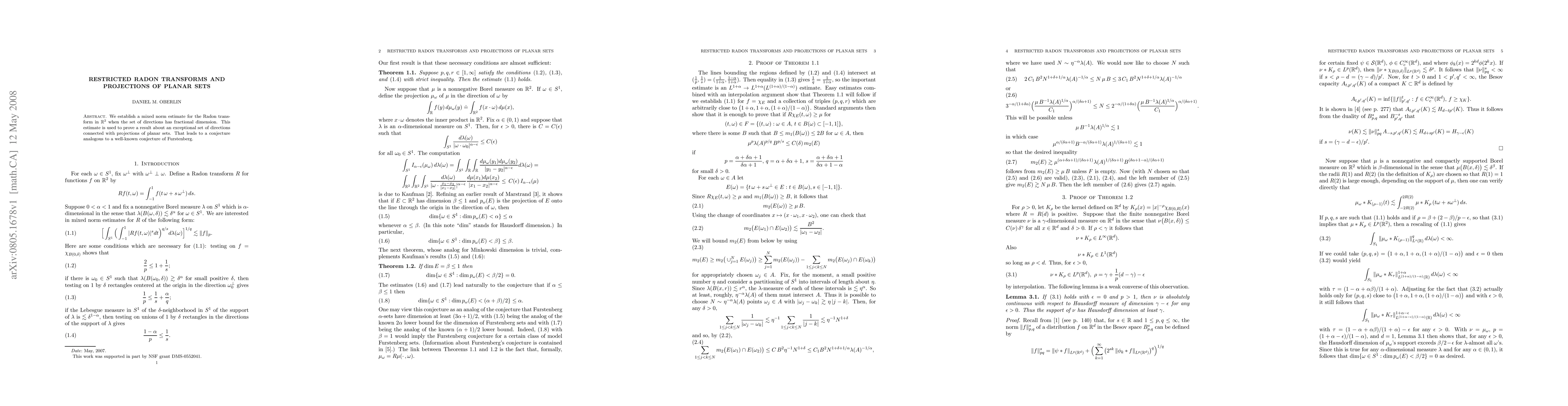 We establish a mixed norm estimate for the Radon transform in the plane when the set of directions has fractional dimension. This estimate is used to prove a result about an exceptional set of directions connected with projections of planar sets. That leads to a conjecture analogous to a well-known conjecture of Furstenberg.