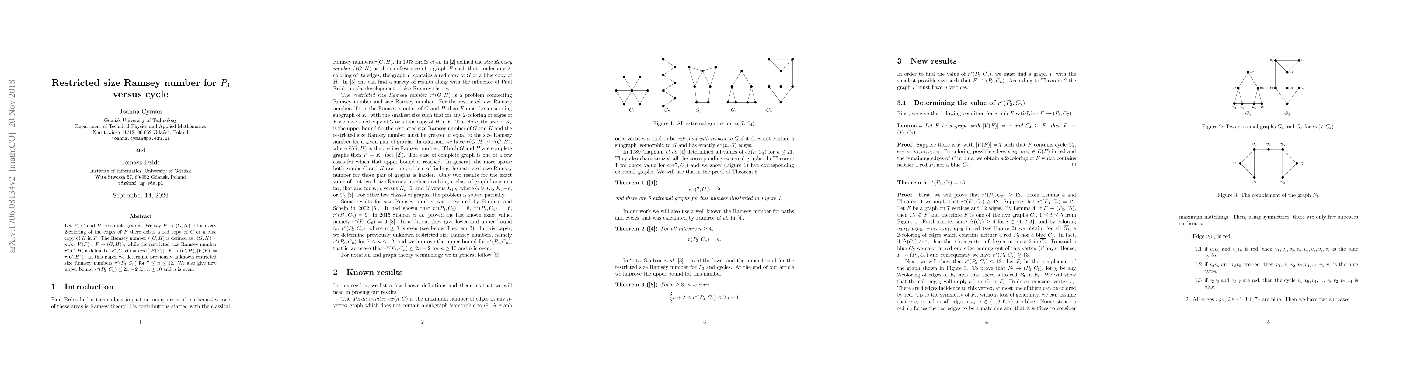 This paper determines previously unknown restricted size Ramsey numbers for paths of length 3 ($P_3$) versus cycles ($C_n$) for $7 \leq n \leq 12$, and provides a new upper bound $r^{*}(P_3, C_n) \leq 2n-2$ for even $n \geq 8$.
