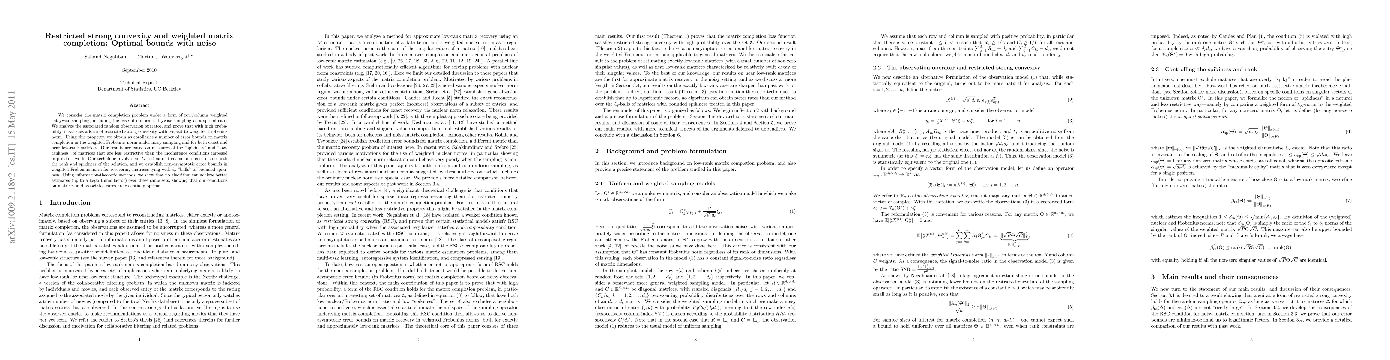 Researchers establish optimal bounds for matrix completion under noisy sampling, using a novel form of restricted strong convexity, and show that their conditions are essentially the best achievable estimates.