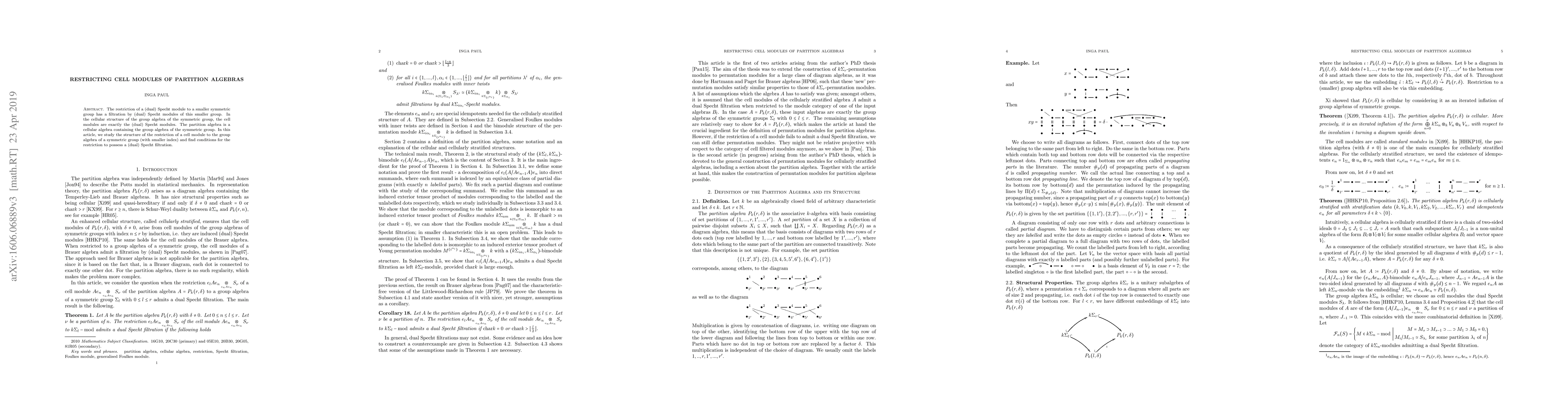This paper explores the restriction of cell modules from partition algebras to smaller symmetric groups, finding conditions for these restrictions to have a Specht filtration. It delves into the cellular structure of symmetric group algebras and partition algebras, establishing a connection between the two.