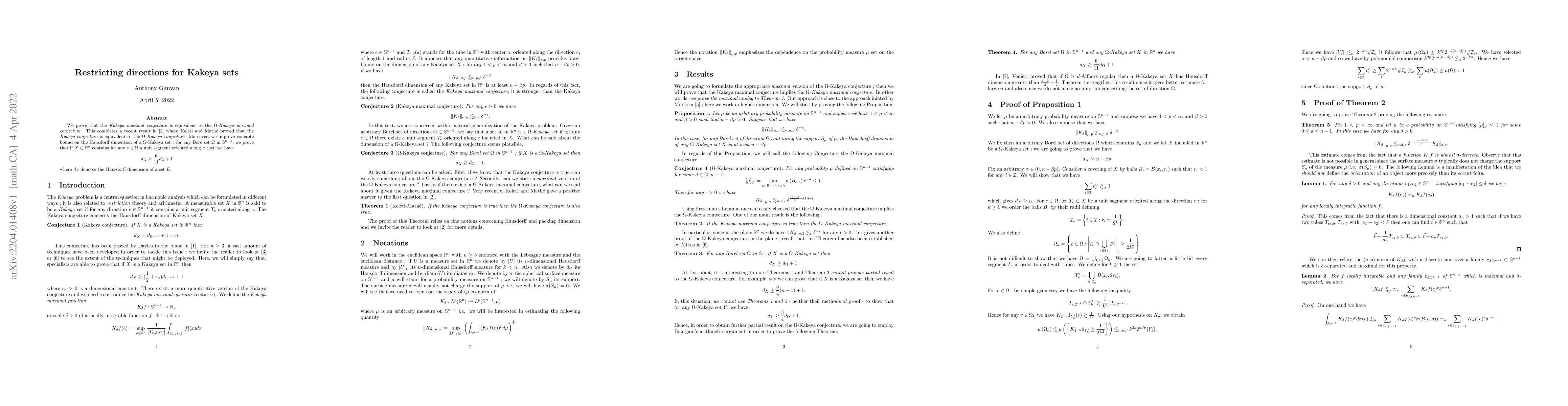 We prove that the Kakeya maximal conjecture is equivalent to the $\Omega$-Kakeya maximal conjecture. This completes a recent result in [2] where Keleti and Math{\'e} proved that the Kakeya conjecture is equivalent to the $\Omega$-Kakeya conjecture. Moreover, we improve concrete bound on the Hausdorff dimension of a $\Omega$-Kakeya set : for any Bore set $\Omega$ in S n--1 , we prove that if X $\subset$ R n contains for any e $\in$ $\Omega$ a unit segment oriented along e then we have dX $\ge$ 6 11 d$\Omega$ + 1 where dE denotes the Hausdorff dimension of a set E.