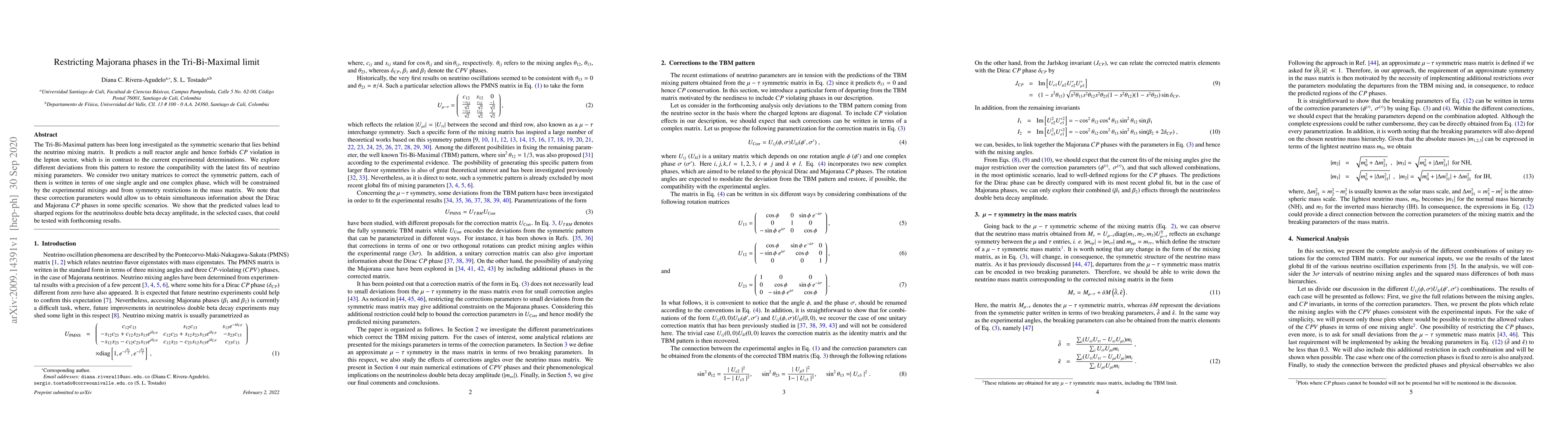 The Tri-Bi-Maximal pattern has been long investigated as the symmetric scenario that lies behind the neutrino mixing matrix. It predicts a null reactor angle and hence forbids $CP$ violation in the lepton sector, which is in contrast to the current experimental determinations. We explore different deviations from this pattern to restore the compatibility with the latest fits of neutrino mixing parameters. We consider two unitary matrices to correct the symmetric pattern, each of them is written in terms of one single angle and one complex phase, which will be constrained by the experimental mixings and from symmetry restrictions in the mass matrix. We note that these correction parameters would allow us to obtain simultaneous information about the Dirac and Majorana $CP$ phases in some specific scenarios. We show that the predicted values lead to sharped regions for the neutrinoless double beta decay amplitude, in the selected cases, that could be tested with forthcoming results.