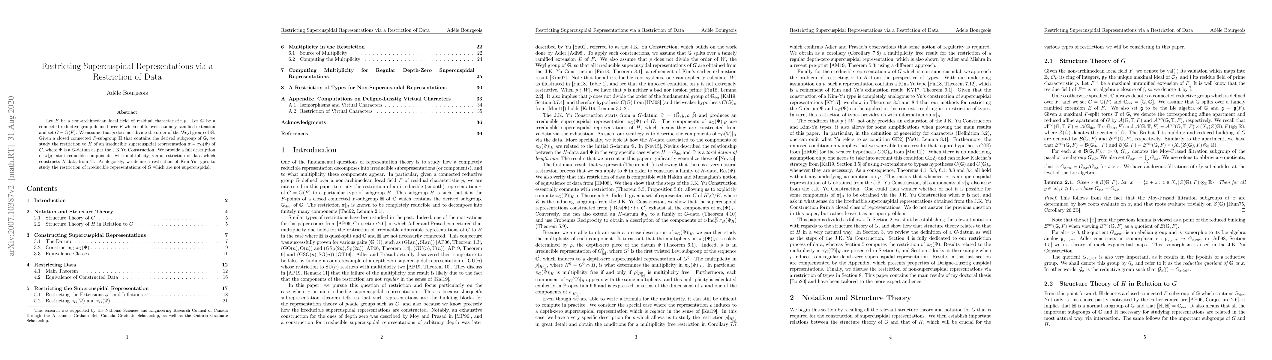 This paper develops a method to restrict supercuspidal representations of reductive groups over non-archimedean local fields, providing a full description of the restriction via a new concept of 'data' that can be applied to non-supercuspidal representations as well.