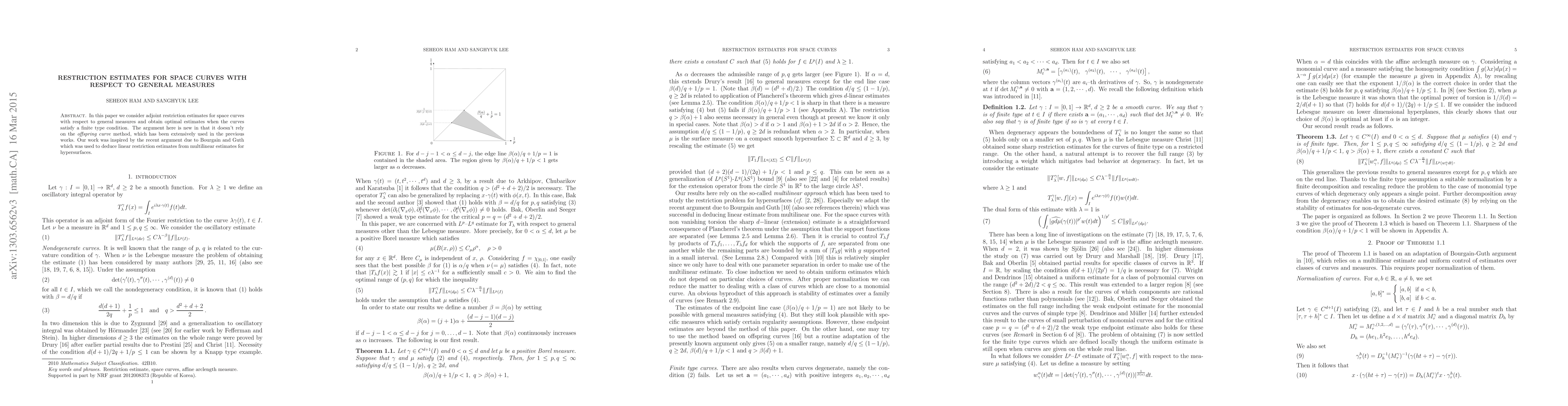 In this paper we consider adjoint restriction estimates for space curves with respect to general measures and obtain optimal estimates when the curves satisfy a finite type condition. The argument here is new in that it doesn't rely on the \emph{offspring curve} method, which has been extensively used in the previous works. Our work was inspired by the recent argument due to Bourgain and Guth which was used to deduce linear restriction estimates from multilinear estimates for hypersurfaces.