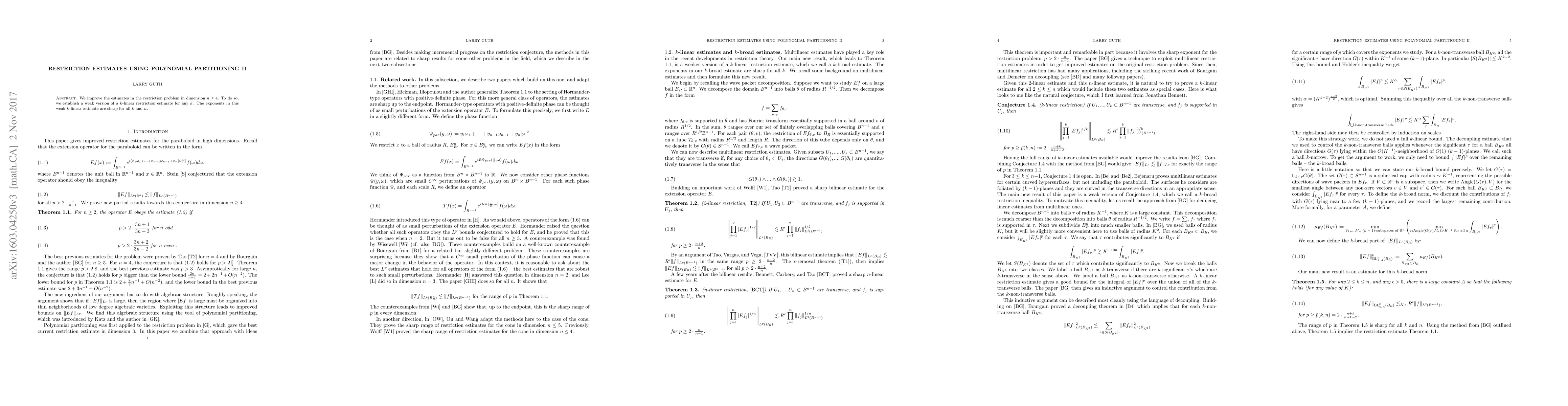We improve the estimates in the restriction problem in dimension $n \ge 4$. To do so, we establish a weak version of a $k$-linear restriction estimate for any $k$. The exponents in this weak $k$-linear estimate are sharp for all $k$ and $n$.