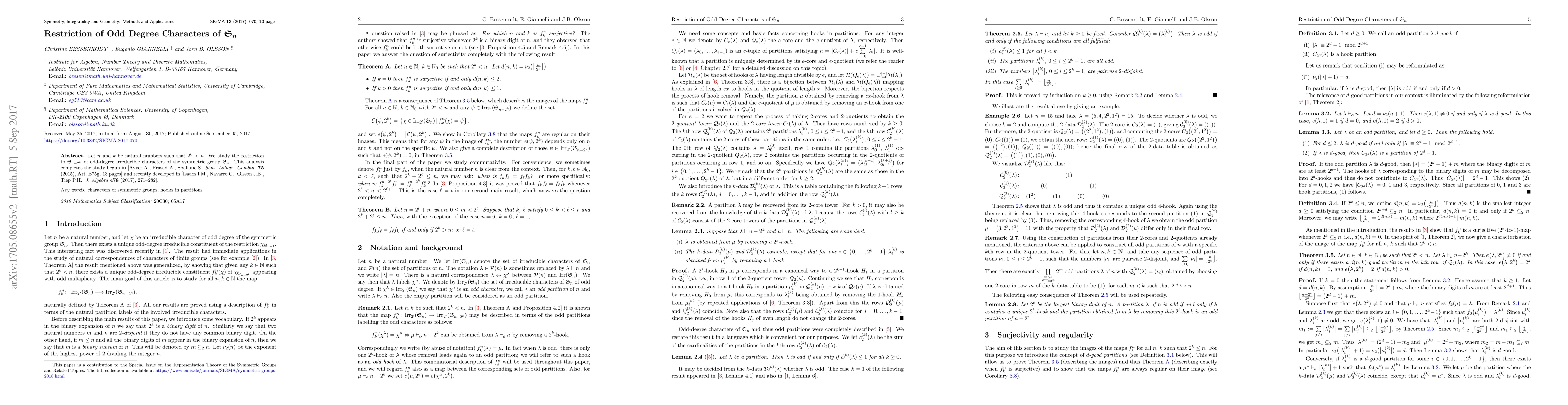 Let $n$ and $k$ be natural numbers such that $2^k < n$. We study the restriction to $\mathfrak{S}_{n-2^k}$ of odd-degree irreducible characters of the symmetric group $\mathfrak{S}_n$. This analysis completes the study begun in [Ayyer A., Prasad A., Spallone S., Sem. Lothar. Combin. 75 (2015), Art. B75g, 13 pages] and recently developed in [Isaacs I.M., Navarro G., Olsson J.B., Tiep P.H., J. Algebra 478 (2017), 271-282].