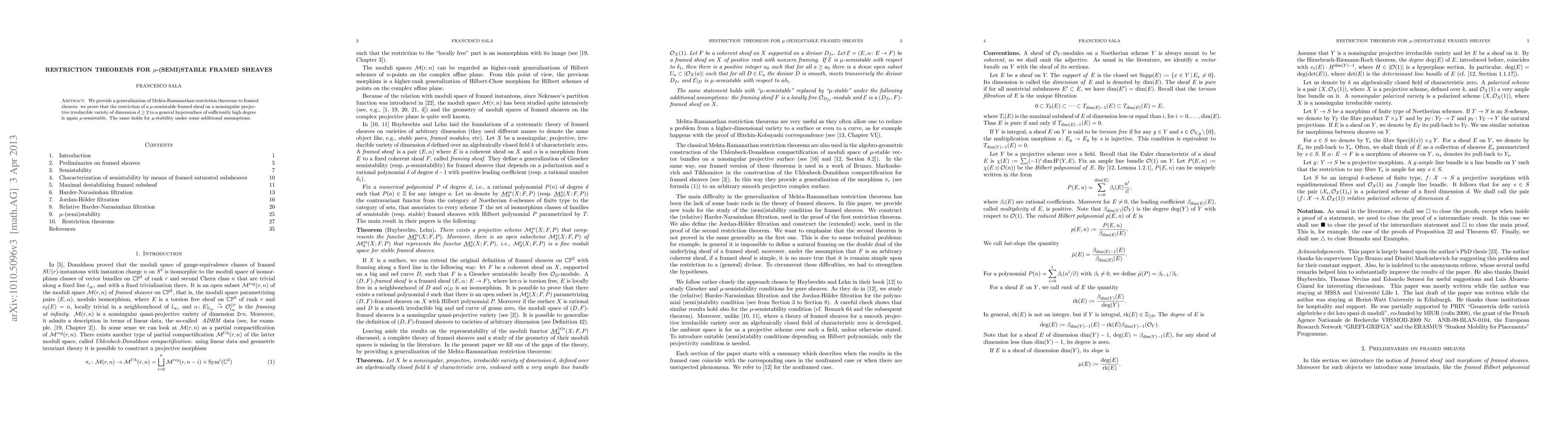 This paper generalizes Mehta-Ramanathan theorems to framed sheaves, proving that a $\mu$-semistable framed sheaf on a nonsingular projective variety restricts to a $\mu$-semistable sheaf on a general hypersurface of high degree. It also establishes $\mu$-stability under certain additional conditions.