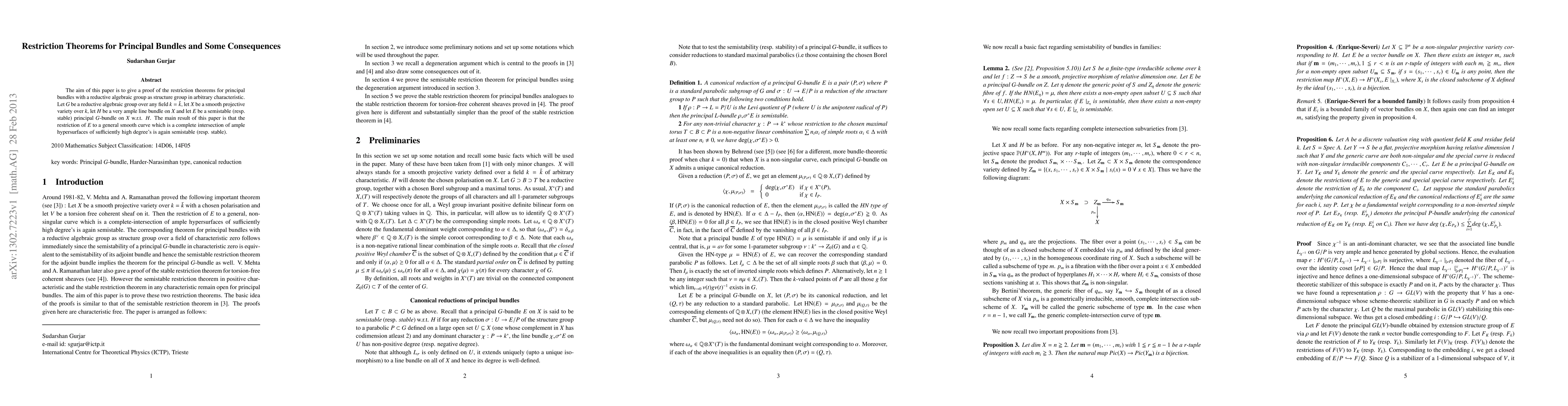 This paper proves a restriction theorem for principal bundles on smooth projective varieties, showing that restricting to a complete intersection of ample hypersurfaces preserves semistability or stability.