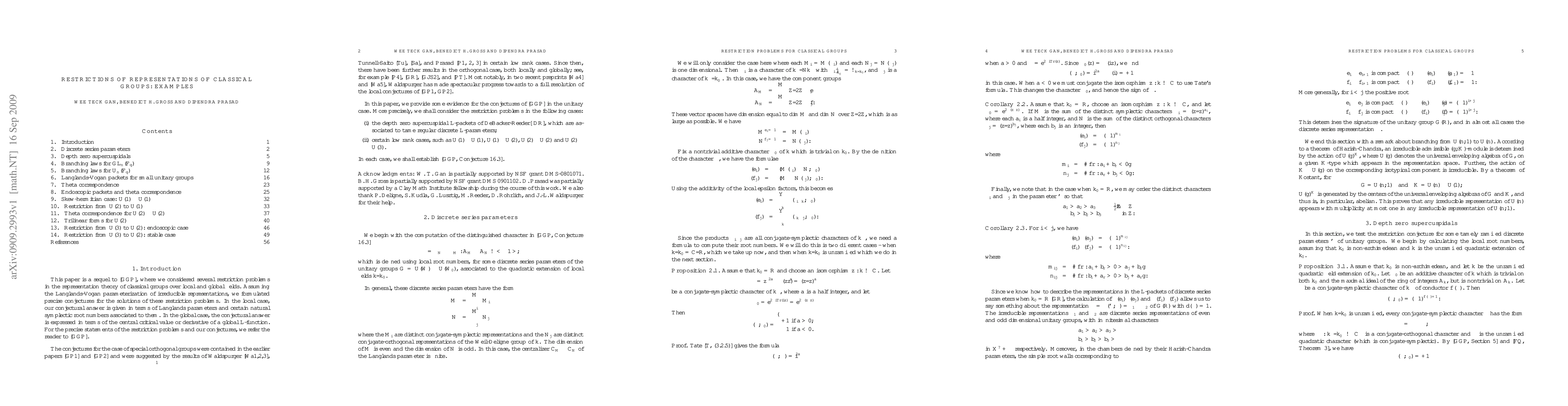 This paper verifies several conjectures regarding the restrictions of representations of classical groups over local and global fields, formulated using Langlands-Vogan parameterization. It confirms these conjectures in low rank cases through methods of base change, theta correspondence, and global arguments.