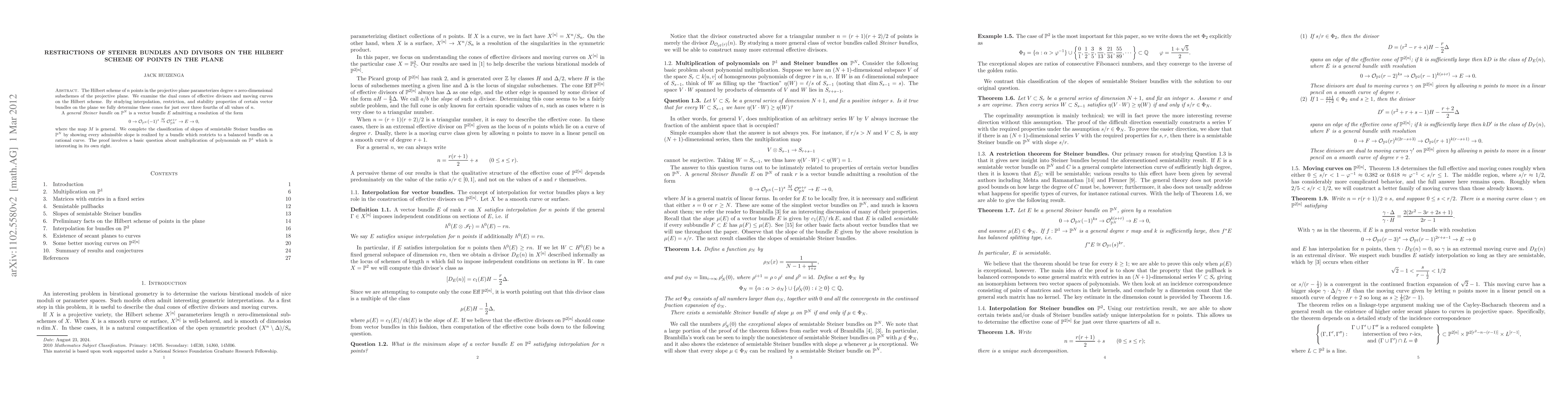 The Hilbert scheme of n points in the projective plane parameterizes degree n zero-dimensional subschemes of the projective plane. We examine the dual cones of effective divisors and moving curves on the Hilbert scheme. By studying interpolation, restriction, and stability properties of certain vector bundles on the plane we fully determine these cones for just over three fourths of all values of n. A general Steiner bundle on P^N is a vector bundle admitting a linear resolution of a particular form. We complete the classification of slopes of semistable Steiner bundles on P^N by showing every admissible slope is realized by a bundle which restricts to a semistable bundle on a rational curve. The proof involves a basic question about multiplication of polynomials on P^1 which is interesting in its own right.