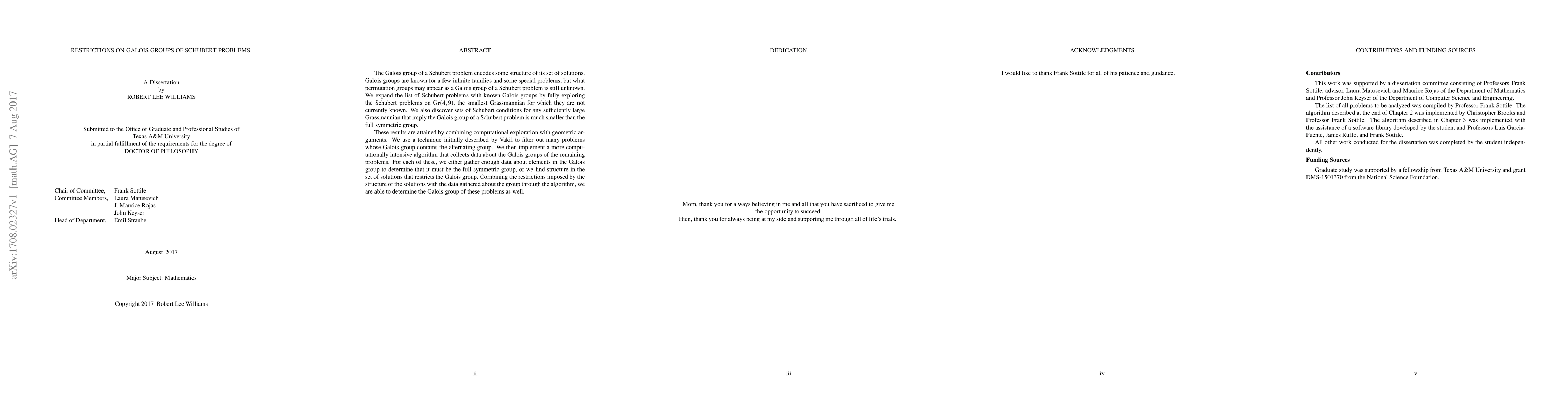 The research explores restrictions on Galois groups of Schubert problems by fully examining Schubert problems on Gr(4,9) and identifying conditions that imply smaller Galois groups for larger Grassmannians.