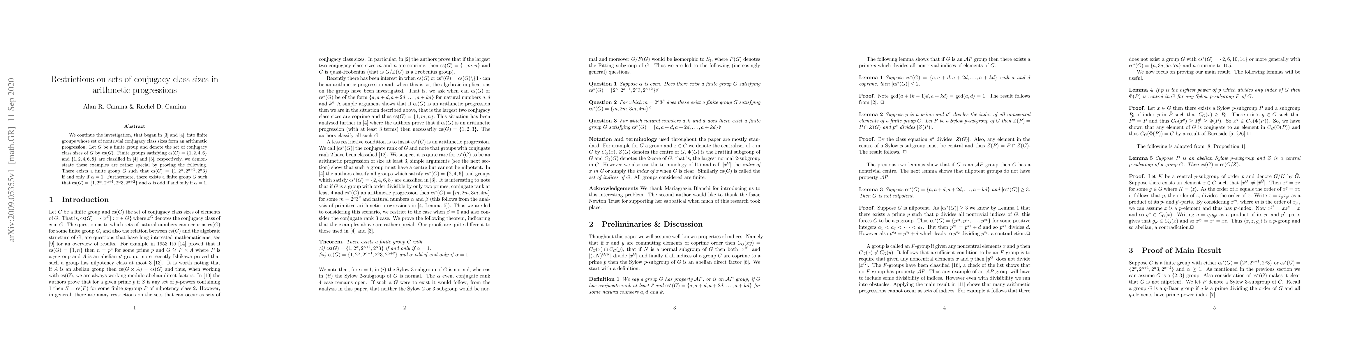 Researchers investigate finite groups with conjugacy class sizes forming an arithmetic progression and find specific conditions for certain sequences of class sizes.