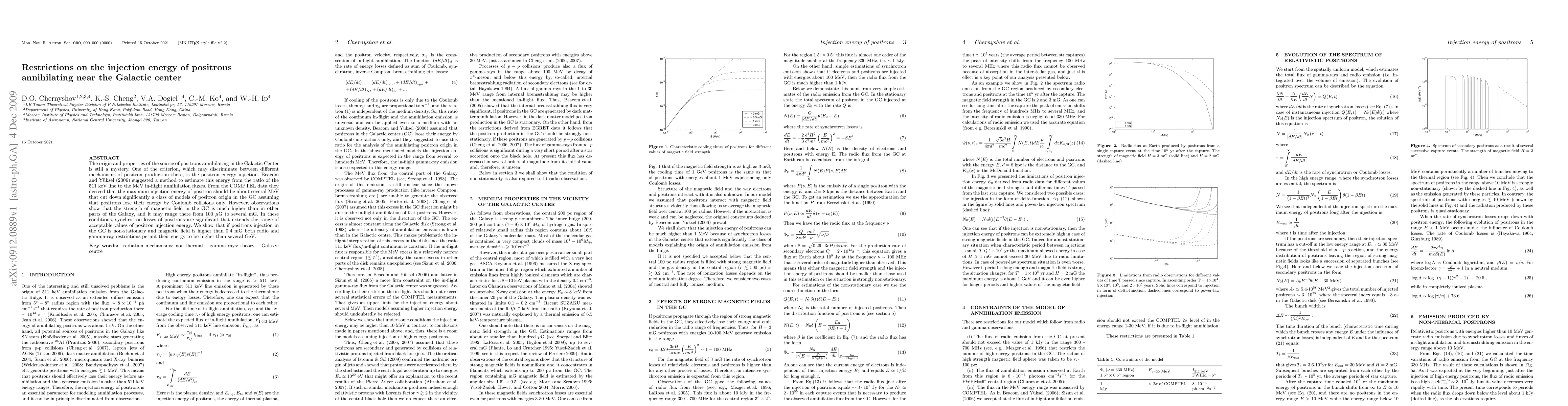 The origin and properties of the source of positrons annihilating in the Galactic Center is still a mystery. One of the criterion, which may discriminate between different mechanisms of positron production there, is the positron energy injection. Beacom and Yueksel (2006) suggested a method to estimate this energy from the ratio of the 511 keV line to the MeV in-flight annihilation fluxes. From the COMPTEL data they derived that the maximum injection energy of positron should be about several MeV that cut down significantly a class of models of positron origin in the GC assuming that positrons lose their energy by Coulomb collisions only. However, observations show that the strength of magnetic field in the GC is much higher than in other parts of the Galaxy, and it may range there from 100 $\mu$G to several mG. In these conditions, synchrotron losses of positrons are significant that extends the range of acceptable values of positron injection energy. We show that if positrons injection in the GC is non-stationary and magnetic field is higher than 0.4 mG both radio and gamma-ray restrictions permit their energy to be higher than several GeV.