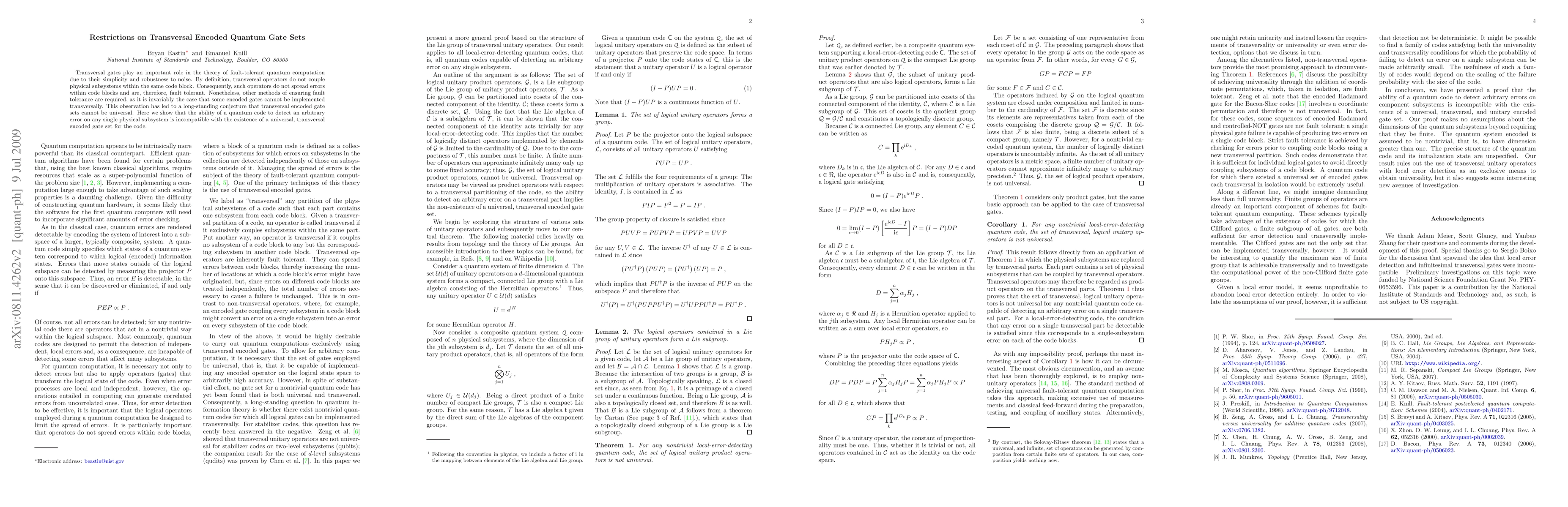 This paper demonstrates that quantum codes capable of detecting any single-subsystem error cannot support a universal, transversal encoded gate set, challenging the conjecture that such gate sets are inherently non-universal. Thus, transversal gates, while robust, are limited in their application for fault-tolerant quantum computation.