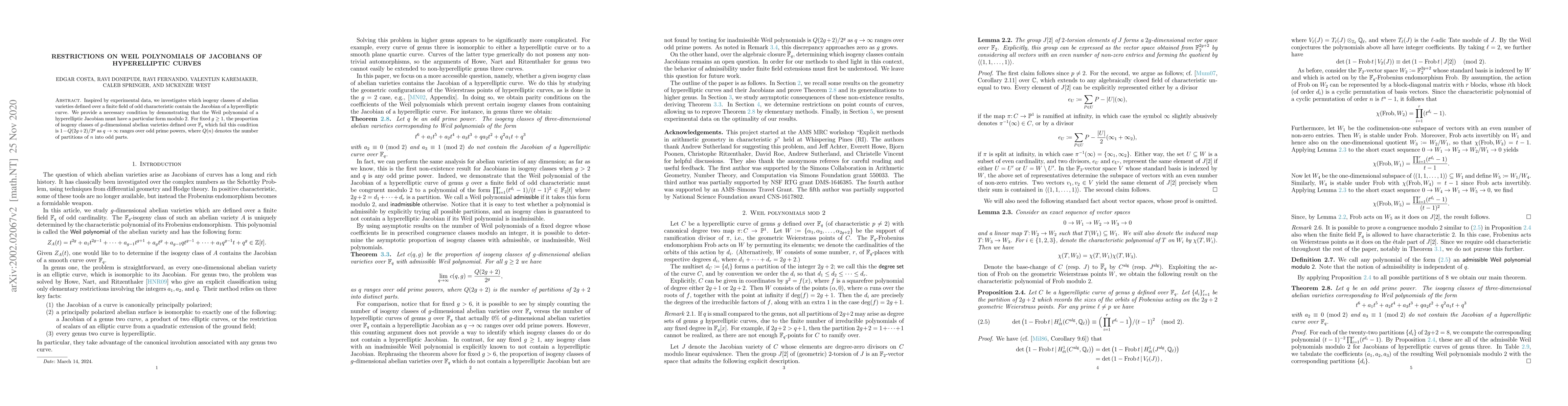 Inspired by experimental data, this paper investigates which isogeny classes of abelian varieties defined over a finite field of odd characteristic contain the Jacobian of a hyperelliptic curve. We provide a necessary condition by demonstrating that the Weil polynomial of a hyperelliptic Jacobian must have a particular form modulo 2. For fixed ${g\geq1}$, the proportion of isogeny classes of $g$ dimensional abelian varieties defined over $\mathbb{F}_q$ which fail this condition is $1 - Q(2g + 2)/2^g$ as $q\to\infty$ ranges over odd prime powers, where $Q(n)$ denotes the number of partitions of $n$ into odd parts.