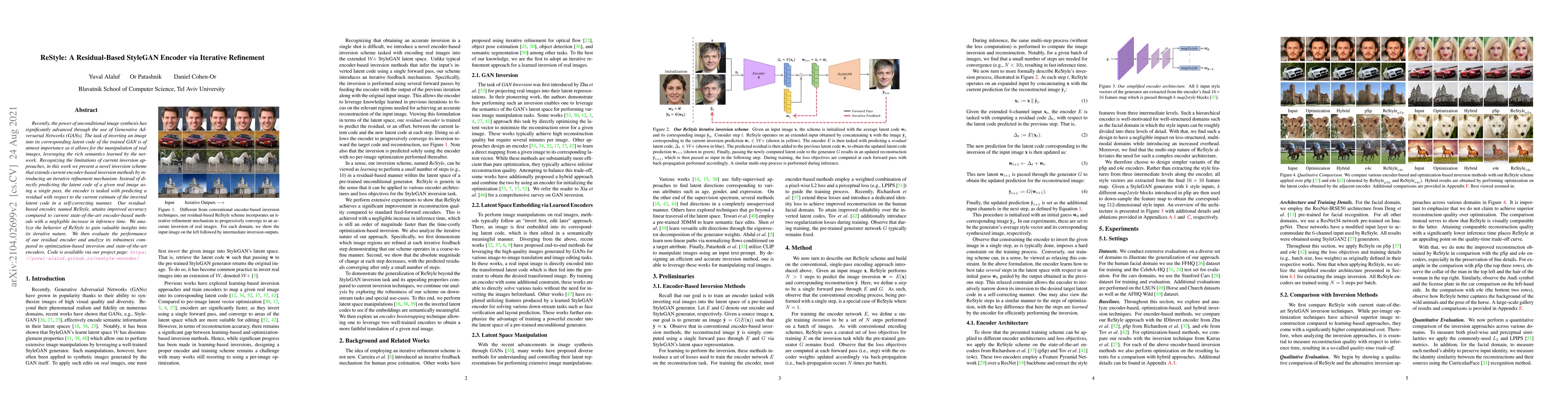 A new inversion scheme for Generative Adversarial Networks (GANs) called ReStyle improves image synthesis accuracy through an iterative refinement mechanism, achieving better results with minimal added inference time.