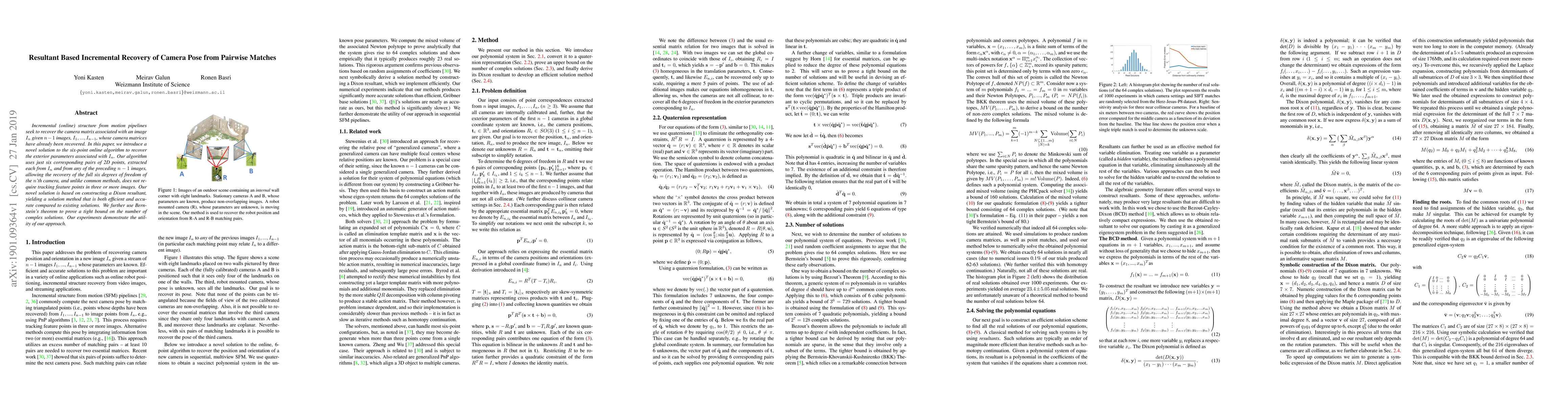 Incremental (online) structure from motion pipelines seek to recover the camera matrix associated with an image $I_n$ given $n-1$ images, $I_1,...,I_{n-1}$, whose camera matrices have already been recovered. In this paper, we introduce a novel solution to the six-point online algorithm to recover the exterior parameters associated with $I_n$. Our algorithm uses just six corresponding pairs of 2D points, extracted each from $I_n$ and from \textit{any} of the preceding $n-1$ images, allowing the recovery of the full six degrees of freedom of the $n$'th camera, and unlike common methods, does not require tracking feature points in three or more images. Our novel solution is based on constructing a Dixon resultant, yielding a solution method that is both efficient and accurate compared to existing solutions. We further use Bernstein's theorem to prove a tight bound on the number of complex solutions. Our experiments demonstrate the utility of our approach.