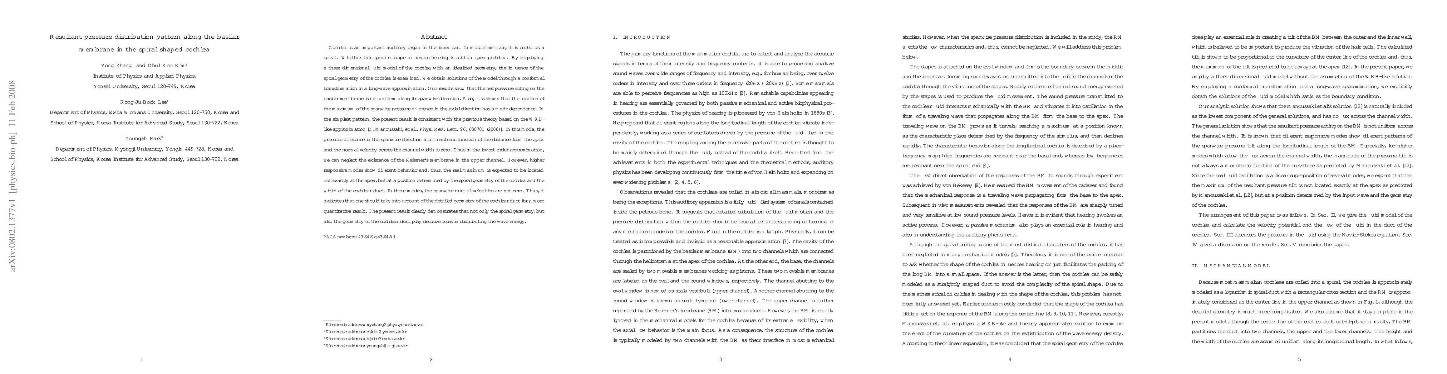 This study uses a three-dimensional fluid model to investigate how the spiral shape of the cochlea influences pressure distribution along the basilar membrane. Results show non-uniform pressure and a mode-dependent maximum pressure location, indicating that cochlear duct geometry significantly affects wave energy distribution.
