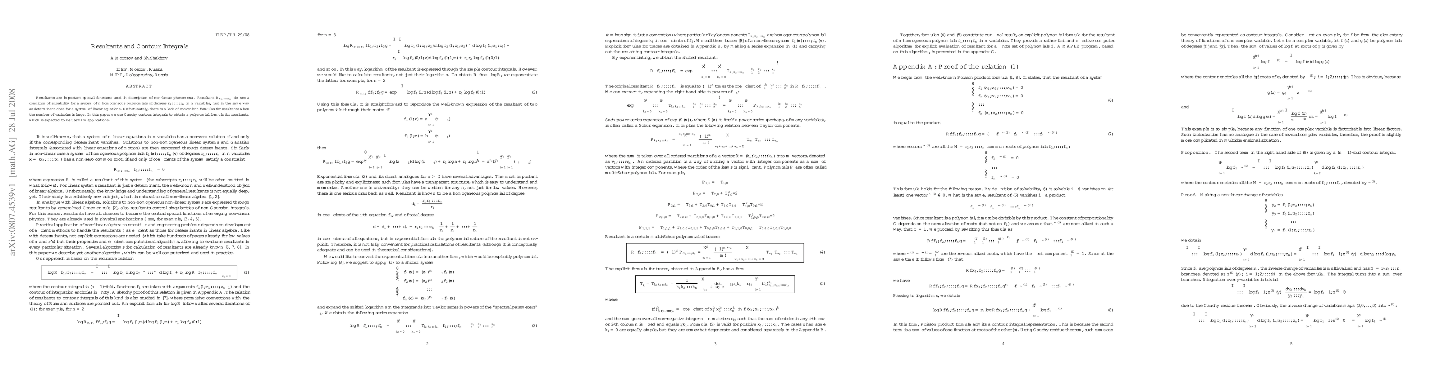 This paper develops a polynomial formula for resultants using Cauchy contour integrals, addressing the lack of convenient formulas for large variable systems and aiming to improve applications involving non-linear phenomena.
