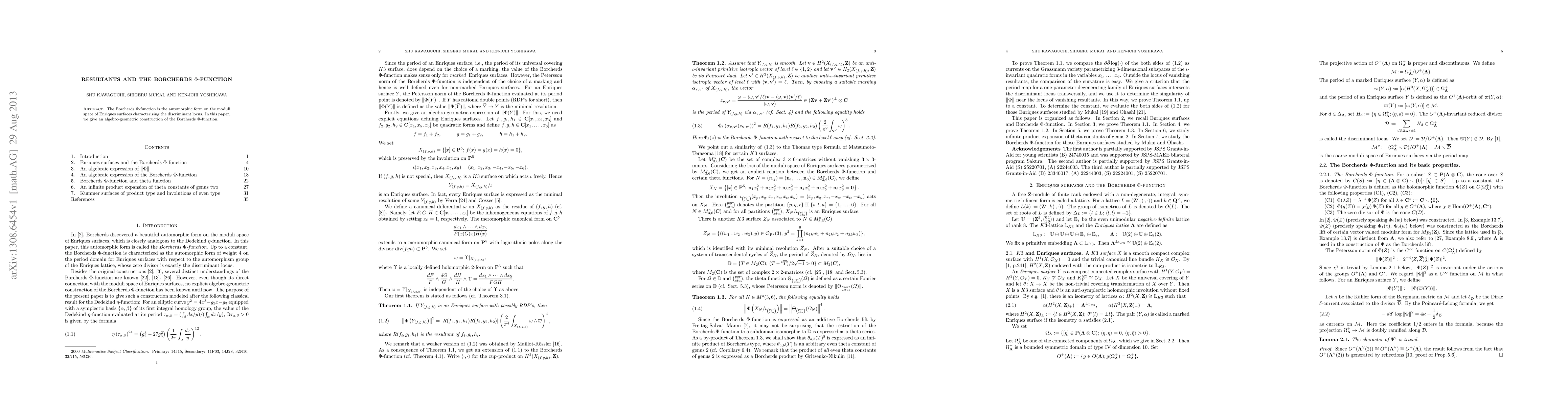 Researchers develop an algebro-geometric method to construct the Borcherds Phi-function, a key tool for studying Enriques surfaces in number theory.