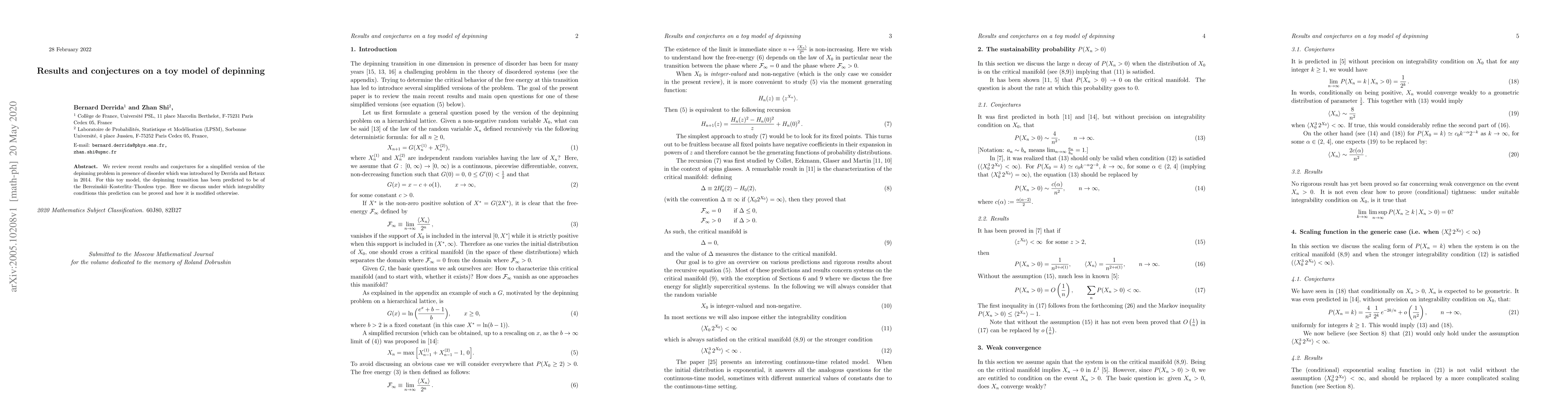 We review recent results and conjectures for a simplified version of the depinning problem in presence of disorder which was introduced by Derrida and Retaux in 2014. For this toy model, the depinning transition has been predicted to be of the Berezinskii--Kosterlitz--Thouless type. Here we discuss under which integrability conditions this prediction can be proved and how it is modified otherwise.