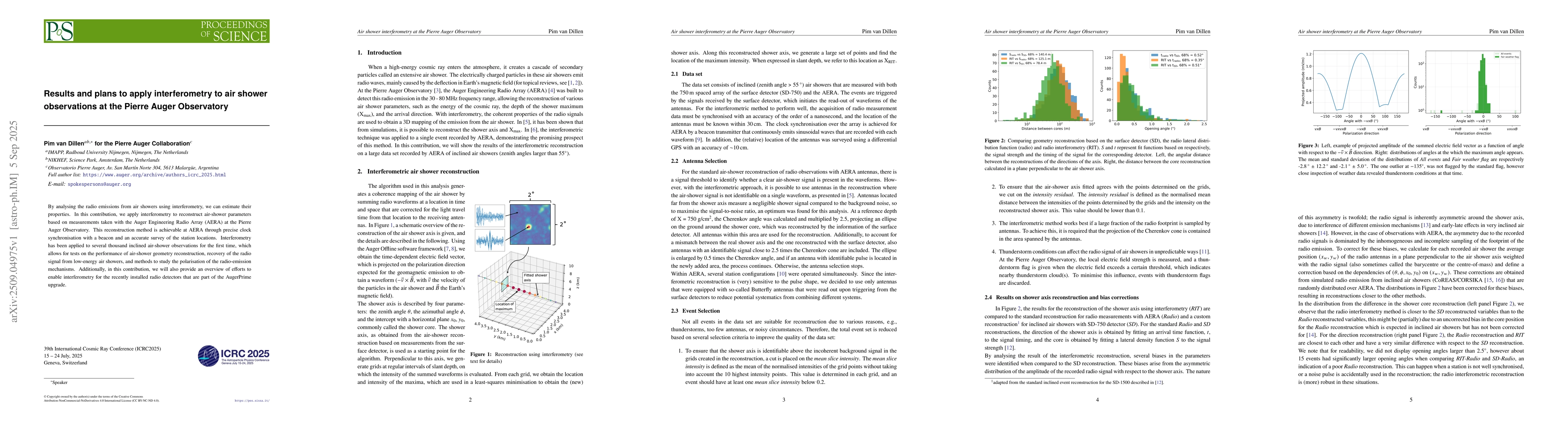 By analysing the radio emissions from air showers using interferometry, we can estimate their properties. In this contribution, we apply interferometry to reconstruct air-shower parameters based on measurements taken with the Auger Engineering Radio Array (AERA) at the Pierre Auger Observatory. This reconstruction method is achievable at AERA through precise clock synchronisation with a beacon and an accurate survey of the station locations. Interferometry has been applied to several thousand inclined air-shower observations for the first time, which allows for tests on the performance of air-shower geometry reconstruction, recovery of the radio signal from low-energy air showers, and methods to study the polarisation of the radio-emission mechanisms. Additionally, in this contribution, we will also provide an overview of efforts to enable interferometry for the recently installed radio detectors that are part of the AugerPrime upgrade.