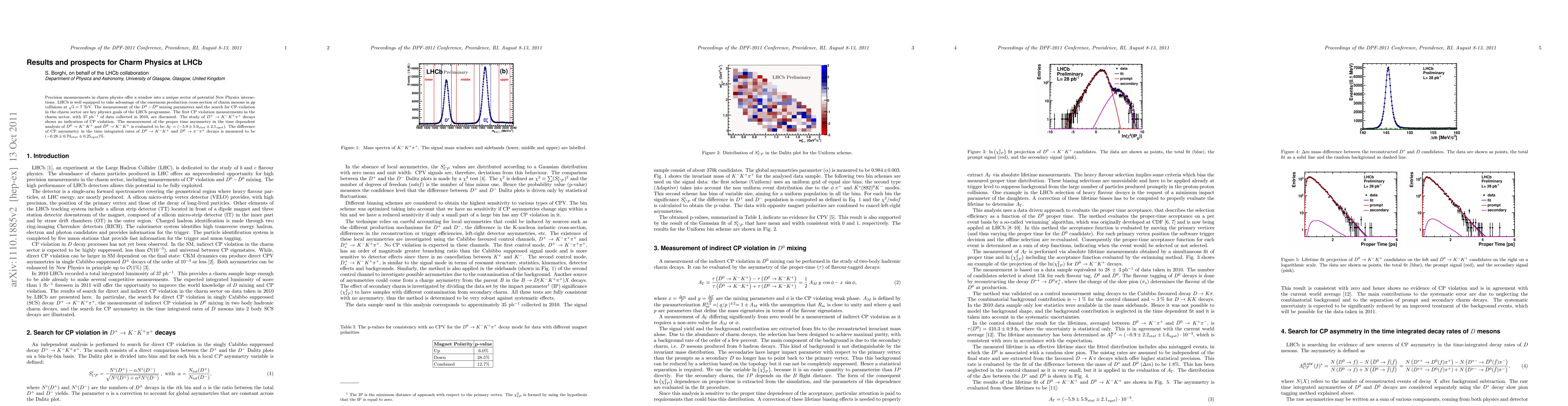 Precision measurements in charm physics offer a window into a unique sector of potential New Physics interactions. LHCb is well equipped to take advantage of the enormous production cross-section of charm mesons in $pp$ collisions at $\sqrt{s}=7$ TeV. The measurement of the $D^0 -\bar{D}^0$ mixing parameters and the search for CP-violation in the charm sector are key physics goals of the LHCb programme. The first CP violation measurements in the charm sector, with 37 pb$^{-1}$ of data collected in 2010, are discussed. The study of $D^+ \rightarrow K^- K^+ \pi^+$ decays shows no indication of CP violation. The measurement of the proper time asymmetry in the time dependent analysis of $D^0\rightarrow K^-K^+$ and $\bar{D}^0\rightarrow K^-K^+$ is evaluated to be $A_{\Gamma}=(-5.9 \pm 5.9_{stat} \pm 2.1_{syst})$. The difference of CP asymmetry in the time integrated rates of $D^0\rightarrow K^-K^+$ and $D^0\rightarrow \pi^- \pi^+$ decays is measured to be $(-0.28 \pm 0.70_{stat} \pm 0.25_{syst})%$.