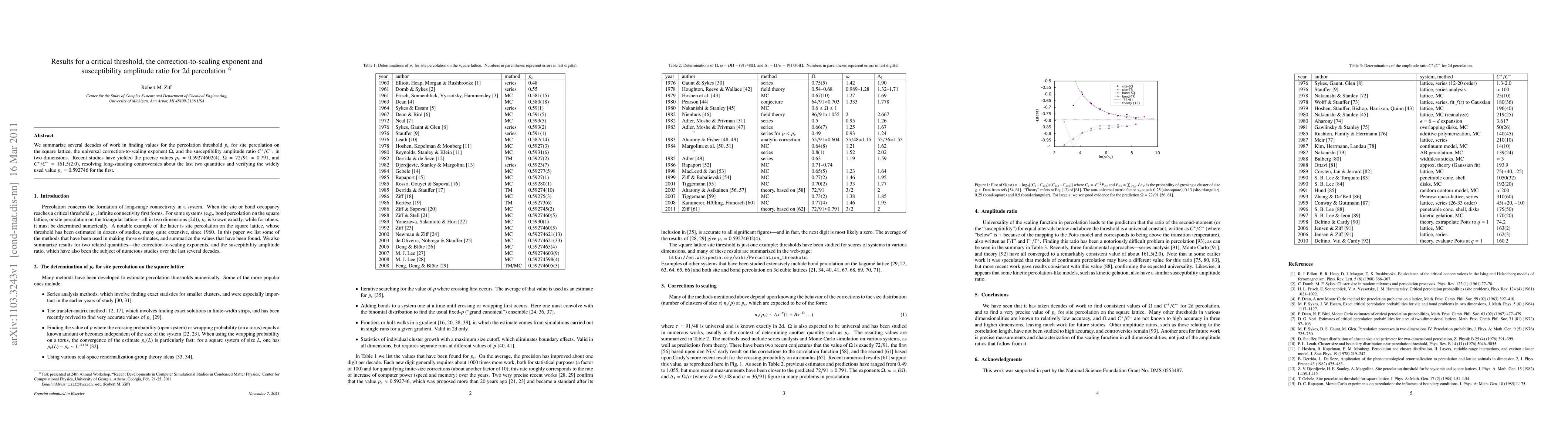 We summarize several decades of work in finding values for the percolation threshold p_c for site percolation on the square lattice, the universal correction-to-scaling exponent Omega, and the susceptibility amplitude ratio C^+/C^-, in two dimensions. Recent studies have yielded the precise values p_c = 0.59274602(4), Omega = 72/91 = 0.791, and C^+/C^- = 161.5(1.5), resolving long-standing controversies about the last two quantities and verifying the widely used value p_c = 0.592746 for the first.