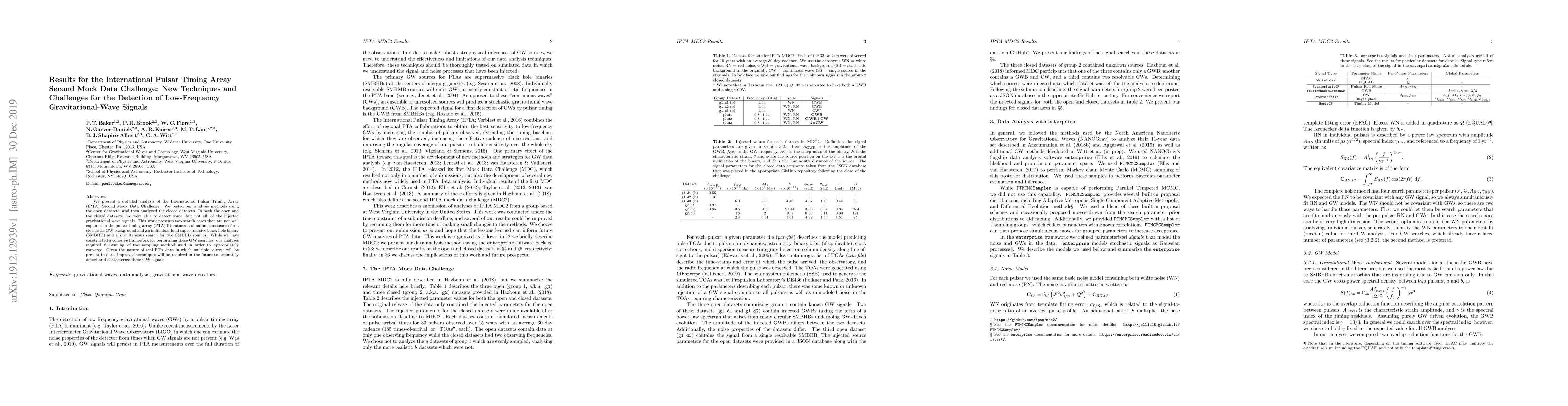 This paper analyzes the International Pulsar Timing Array's Second Mock Data Challenge, detecting some but not all injected gravitational wave signals. The study explores new search techniques for both stochastic gravitational wave backgrounds and individual supermassive black hole binaries, highlighting the need for improved methods to accurately detect multiple sources in real data.