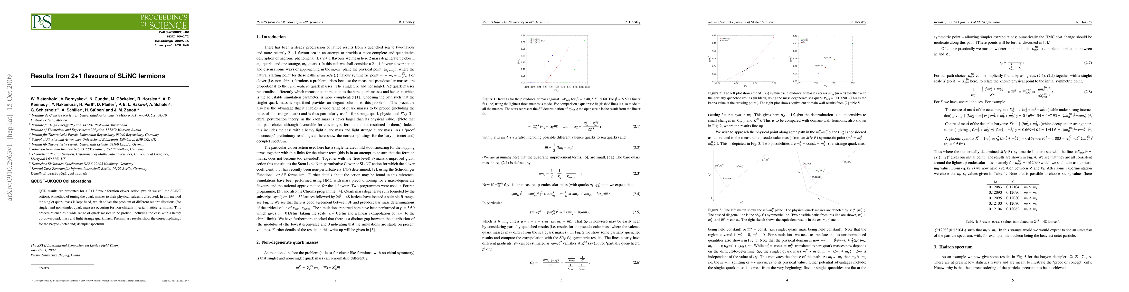 QCD results are presented for a 2+1 flavour fermion clover action (which we call the SLiNC action). A method of tuning the quark masses to their physical values is discussed. In this method the singlet quark mass is kept fixed, which solves the problem of different renormalisations (for singlet and non-singlet quark masses) occuring for non-chirally invariant lattice fermions. This procedure enables a wide range of quark masses to be probed, including the case with a heavy up-down quark mass and light strange quark mass. Preliminary results show the correct splittings for the baryon (octet and) decuplet spectrum.