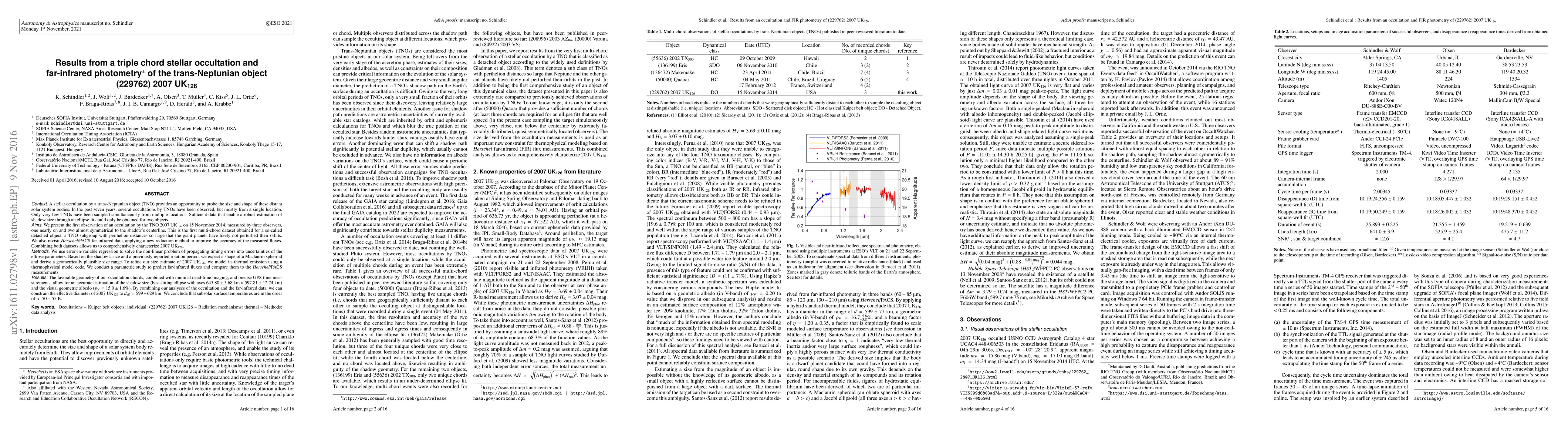 A stellar occultation by a trans-Neptunian object (TNO) provides an opportunity to probe its size and shape. Very few occultations by TNOs have been sampled simultaneously from multiple locations, while a robust estimation of shadow size has been possible for only two objects. We present the first observation of an occultation by the TNO 2007 UK126 on 15 November 2014, measured by three observers, one nearly on and two almost symmetrical to the shadow's centerline. This is the first multi-chord dataset obtained for a so-called detached object, a TNO subgroup with perihelion distances so large that the giant planets have likely not perturbed their orbits. We revisit Herschel/PACS far-infrared data, applying a new reduction method to improve the accuracy of the measured fluxes. Combining both datasets allows us to comprehensively characterize 2007 UK126. We use error-in-variable regression to solve the non-linear problem of propagating timing errors into uncertainties of the ellipse parameters. Based on the shadow's size and a previously reported rotation period, we expect a shape of a Maclaurin spheroid and derive a geometrically plausible size range. To refine our size estimate of 2007 UK126, we model its thermal emission using a thermophysical model code. We conduct a parametric study to predict far-infrared fluxes and compare them to the Herschel/PACS measurements. The favorable geometry of our occultation chords, combined with minimal dead-time imaging, and precise GPS time measurements, allow for an accurate estimation of the shadow size (best-fitting ellipse with axes 645.80 $\pm$ 5.68 km $\times$ 597.81 $\pm$ 12.74 km) and the visual geometric albedo (15.0 $\pm$ 1.6 %). By combining our analyses of the occultation and the far-infrared data, we can constrain the effective diameter of 2007 UK126 to 599 - 629 km. We conclude that subsolar surface temperatures are $\approx$ 50 - 55 K.