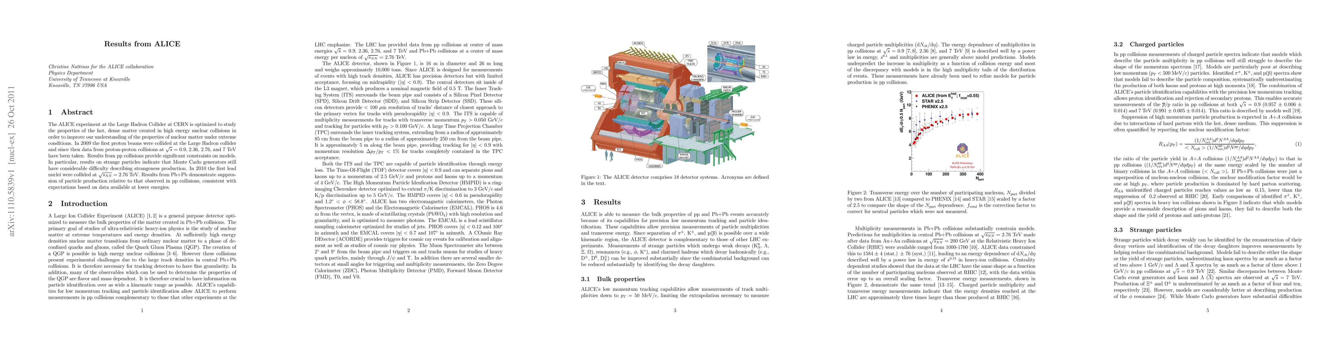 The ALICE experiment at CERN investigates the properties of hot, dense nuclear matter from high-energy collisions, revealing significant constraints on models from proton-proton collisions. Results from lead-lead collisions at 2.76 TeV show suppression of particle production, consistent with expectations of quark-gluon plasma formation.